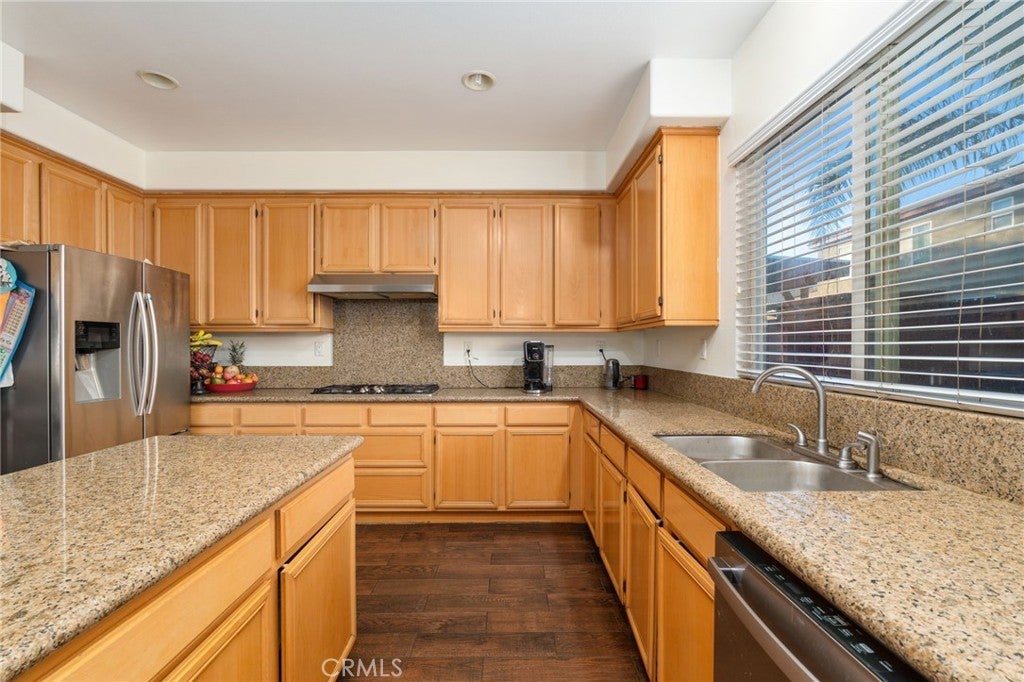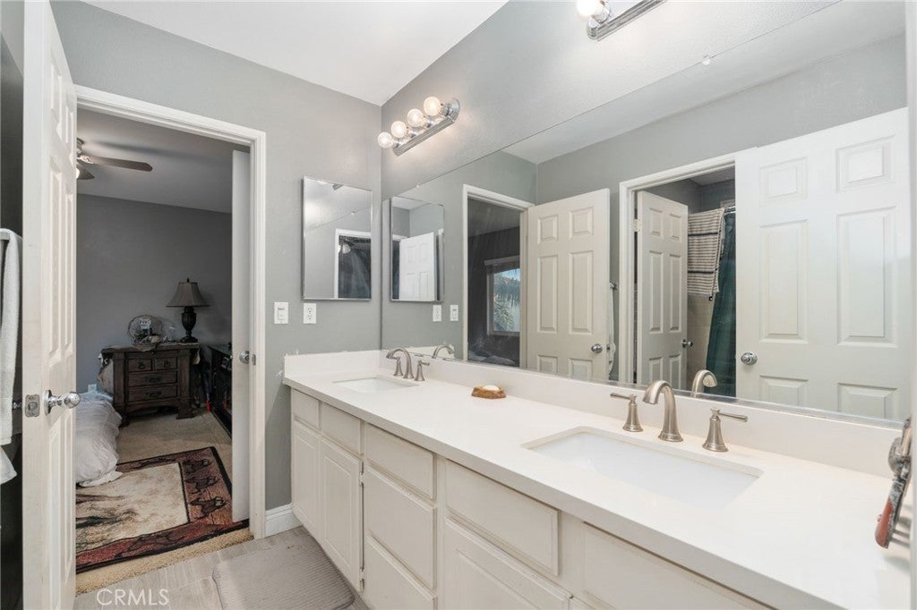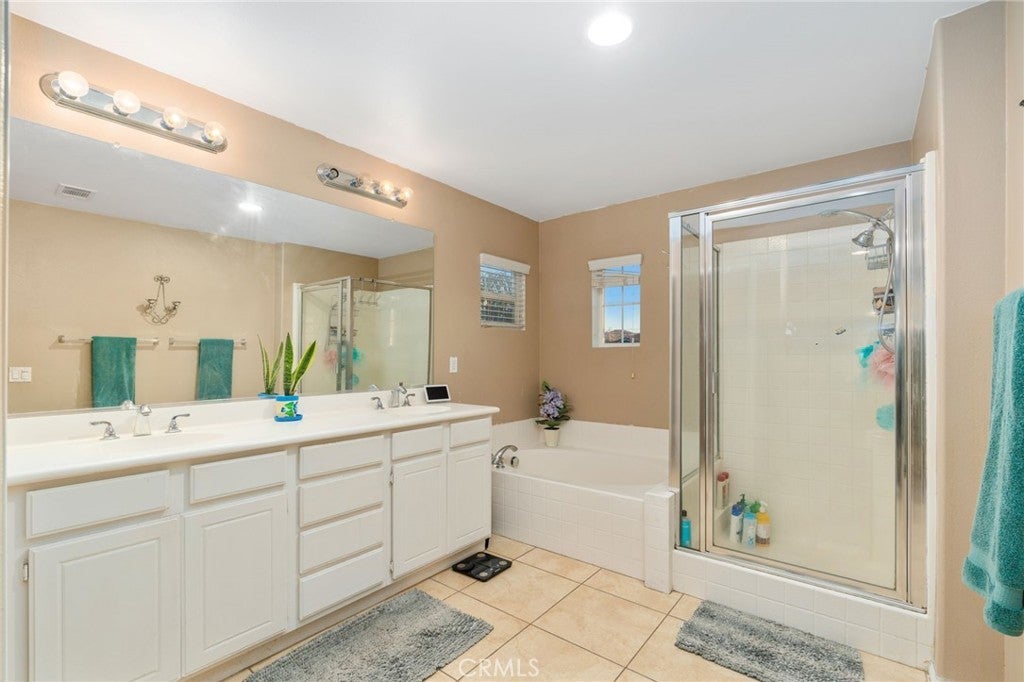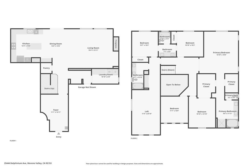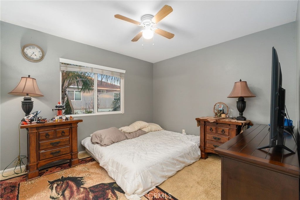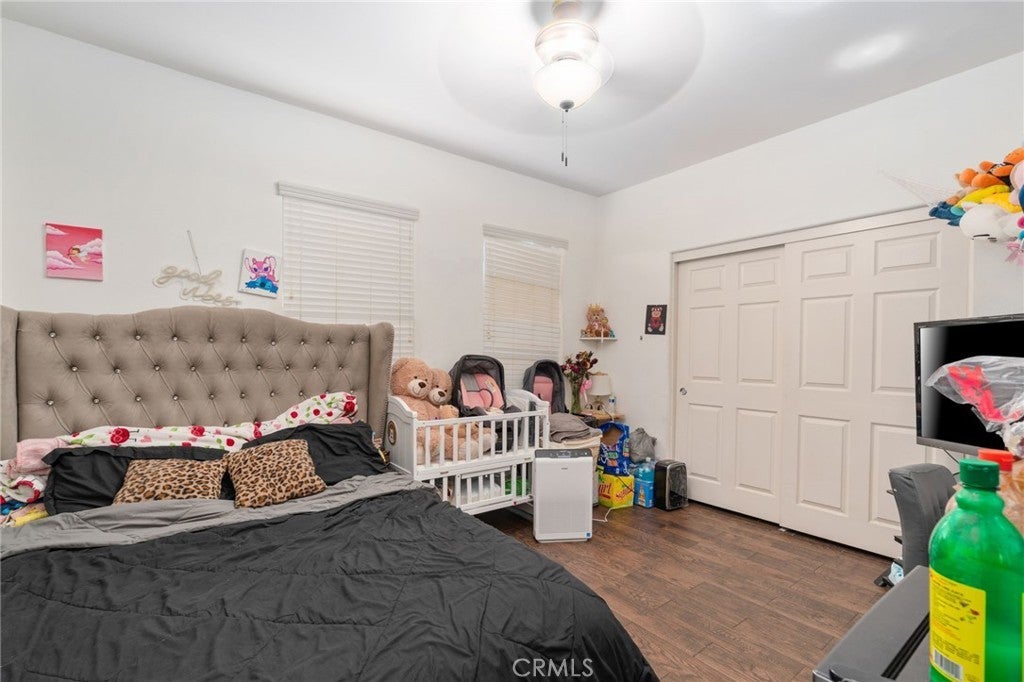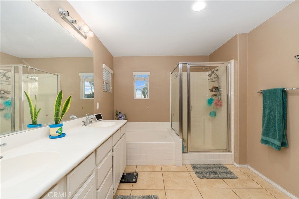 Welcome to this expansive and beautifully upgraded home in Moreno Valley offering exceptional space, functionality, and versatility. The main residence features 5 spacious bedrooms and 3.5 bathrooms, including a convenient Jack-and-Jill bathroom upstairs connecting two of the oversized bedrooms—perfect for added comfort and practicality. In addition, the property includes a fully permitted 1 bedroom, 1 bathroom ADU with its own private entrance and separate address, ideal for multi-generational living, rental income, guest quarters, or a private office setup. Designed with efficiency in mind, the home offers fully installed solar panels to help reduce energy costs and a generous 3-car garage for ample parking and storage. Step inside to a grand entry with soaring high ceilings that create an impressive first impression. The main level showcases rich wood flooring, recessed lighting, and an open-concept layout ideal for entertaining. The inviting living area is anchored by a cozy fireplace, while the chef-inspired kitchen boasts a massive center island, double ovens, abundant cabinetry, and expansive counter space that flows seamlessly into the dining and family areas. Upstairs features plush carpet throughout, massive bedrooms with impressive dimensions, a spacious loft perfect for a media room or additional lounge area, and a conveniently located, generously sized laundry room. The backyard is thoughtfully designed with low-maintenance artificial grass, palm trees, and ambient lighting, creating a private and inviting setting for gatherings or relaxing evenings. Located within an HOA community, this home delivers size, thoughtful design, energy efficiency, and built-in income potential all in one exceptional opportunity.