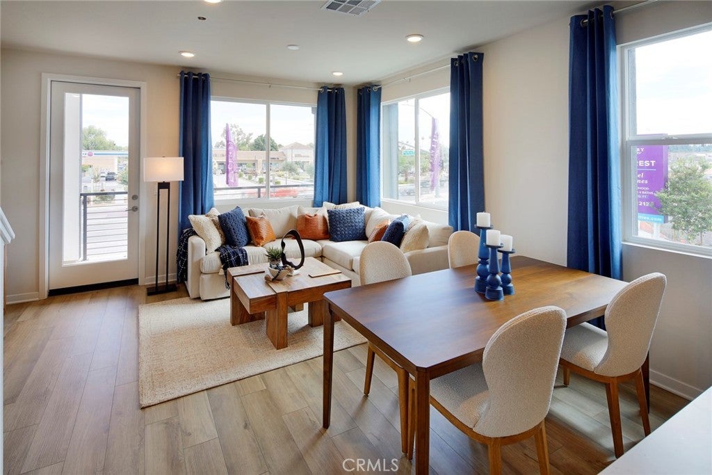Welcome to Sagecrest by Century Communities! This beautiful Tri-level Gated townhome community is located in the heart of Riverside close by the 91 freeway right off Van Buren Blvd. very close to shopping, restaurants and California Baptist University as well as UC Riverside. After walking through your private patio, you will enter to the first floor you will find a jr. suite with its own walk-in closet and full bathroom. Heading up to the second floor you enter a spacious Kitchen with a large island and dining area open to living room which has a large private balcony with city views. The kitchen features " Aria Stone Gray" cabinets, quartz counters and a stylish backsplash. The second level also includes a bedroom and full bathroom. Going up to the third level you will find a spacious Owner's Suite which includes large bathroom with double sinks, walk-in shower and walk-in closet. Finishing the 3rd level there's an additional bedroom with its own private bathroom and walk-in closet. Laundry room is also on third level. Come see this amazing community, Sagecrest is a Gated Community and will include a playground, dog park, shade structures and BBQs and more!