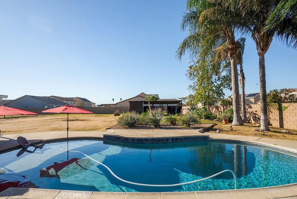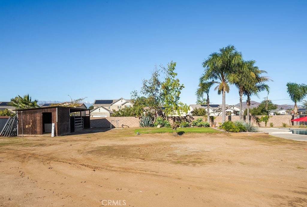 Welcome to this beautifully updated 4 bed, 3 bath ranch-style home on an expansive .48-acre lot in highly desirable Jurupa Valley. This single-story property is a rare find—offering the perfect blend of modern upgrades, open space, and true ranch-style living. Featuring a drive-through lot with full access to the backyard, this home is ideal for anyone needing room for horses, RVs, trailers, boats, large trucks, or equipment. There is ample space to build a horse corral, workshop, ADU, or host gatherings—the possibilities are endless. Inside, you’ll find a great flowing floorplan, including two spacious primary bedrooms, each with their own ensuite bathrooms and direct access to the backyard and pool area—a perfect setup for multi-generational living, guests, or privacy. Step outside and enjoy your own private retreat featuring a custom-built pool with Baja shelf, relaxing spa, and plenty of room for outdoor entertaining. The home also includes paid solar, a brand-new roof, fresh interior paint, and all new fascia and exterior woodwork, giving the property a clean, turnkey feel. This is a property that rarely comes available—spacious, very well maintained, and truly one-of-a-kind. Don’t miss your chance to own one of Jurupa Valley’s most versatile and desirable homes!