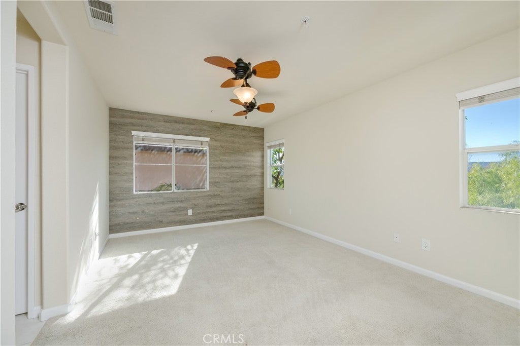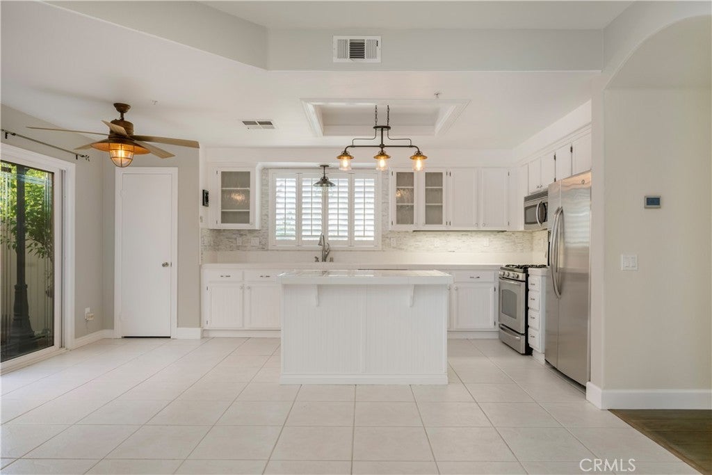 Welcome to this private end unit (former model home) in the highly sought after gated community of the Arboretum, conveniently located in central Murrieta. The three-story unit boasts the largest floor plan within the community (Key West model), showing off an abundance of natural light and views. The home is 1896 square feet with 3 bedrooms and 2.5 baths; a third level bonus office, studio, media room or potential 4th-bedroom all with an unblocked view of the Santa Rosa Plateau. The primary bedroom has a large walk-in closet and en suite bath and shower. The living area consists of a generous den with dining room area and electric fireplace in the family room. Transition outside to a large private courtyard conveniently located next to the well-placed kitchen offering transitional entertainment and dining. The unit has a large 2 car garage with storage and very private exterior courtyard. The unit has been freshly painted, is very well maintained and extremely private. In addition, the Arboretum community offers an array of amenities, including: two resort-style pools, hot tubs, barbecue area, clubhouse, tot lots; all in a beautiful park like setting. The HOA covers private security, pool, landscape maintenance, gated entrance upkeep, water, trash, and sewer. Guest parking is conveniently available throughout the community. Located just minutes from top-rated schools, shopping, dining, and major freeways, this exceptional home offers the best of Murrieta.