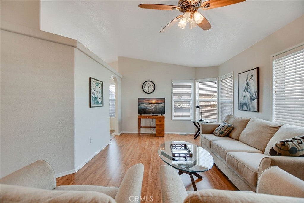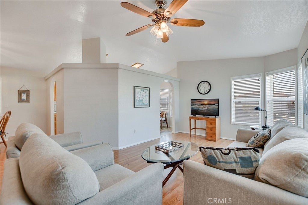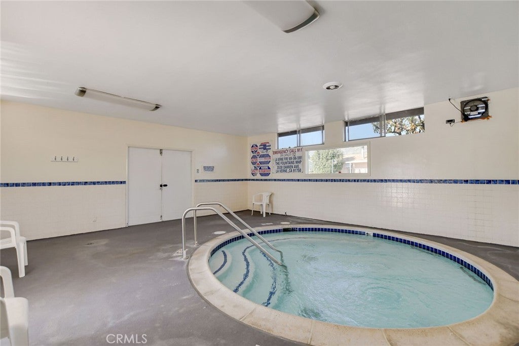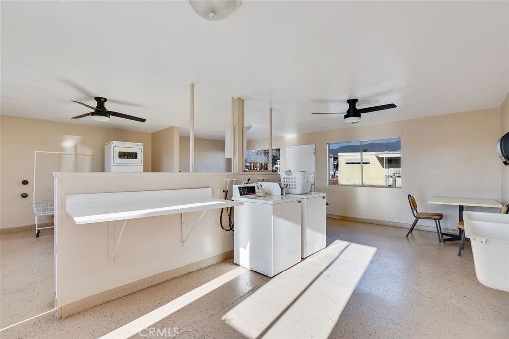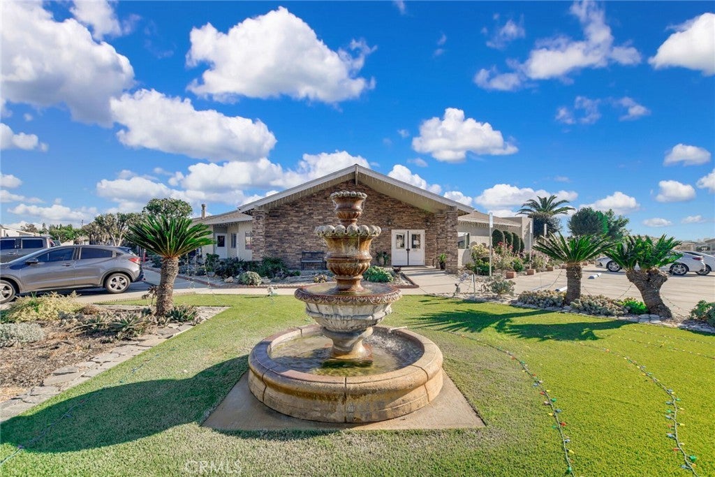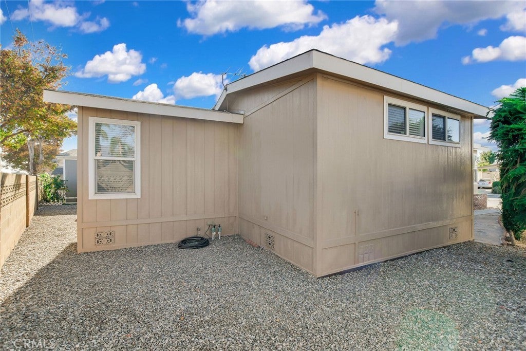 Well-maintained 2 bedroom, 2 bathroom home with a separate den/office located in The Fountains, a 55/45+ community in La Verne. This home offers an open layout with high ceilings that create a spacious feel throughout. The secondary bedroom includes a permitted expansion of approximately 160 sq. ft. (approx. 10' x 16'), providing additional living space compared to many homes in the community. Interior features include laminate flooring throughout with waterproof flooring in the restrooms, a large kitchen with bay window and eating area, and an included French-door refrigerator. Additional features include a separate laundry room with sink, dual-pane windows, newer toilets, and a 100 AMP electrical panel. Roof replaced approximately July 2023 and partial driveway replacement was completed recently. From areas of the home, there are views of the San Gabriel Mountains. An Italian lemon tree is located on the property. The extra-wide street in front provides convenient access and parking. Community amenities include a clubhouse, banquet room, kitchen facilities, swimming pool, spa, shuffleboard area, gym, and dog park. Furniture and personal property are included with the sale, excluding items specified by the seller. Buyer must be approved by Park Management.