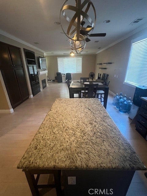 • Interior FeaturesBuilt-in Features, Ceiling Fan(s), Crown Molding, Separate/Formal Dining Room, Eat-in Kitchen, Granite Counters, Open Floorplan, Paneling/Wainscoting, Recessed Lighting, All Bedrooms Down, Bedroom on Main Level, Primary Suite, Walk-In Closet(s)
