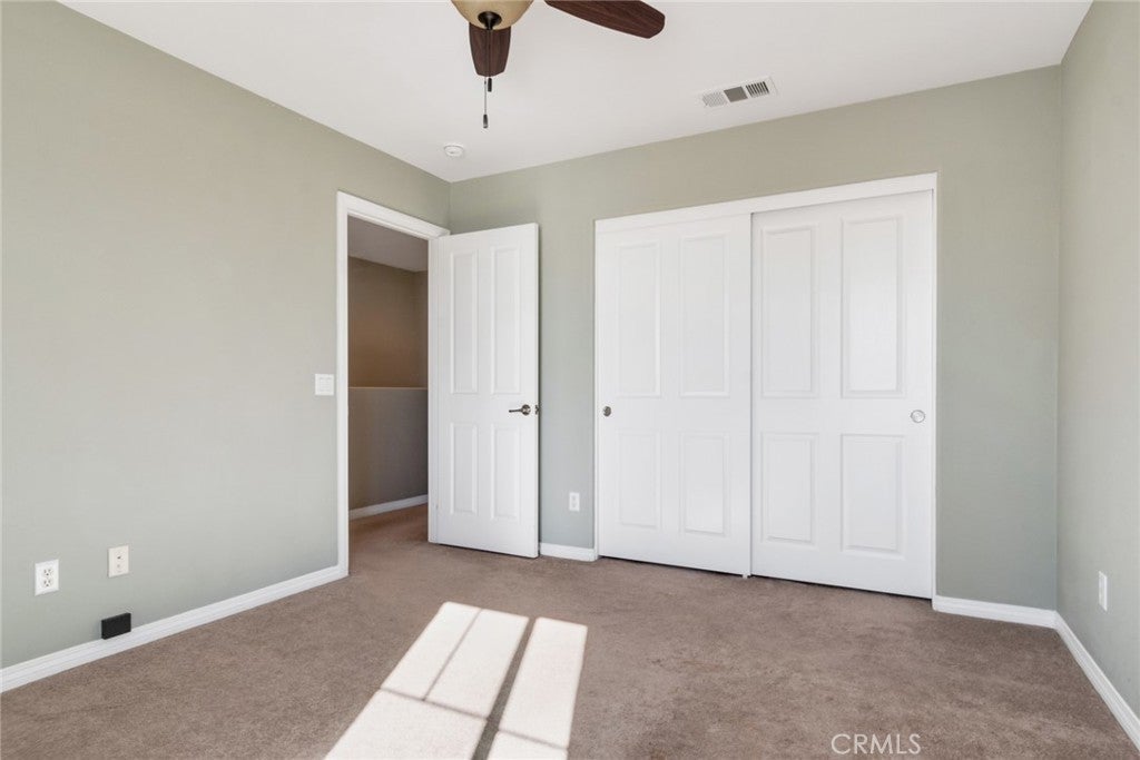 5 bedrooms, 3 bathroom home with 1 bedroom and full bathroom downstairs located in the Rosena Ranch Community. Large, flat lot with plenty of room for entertaining! 3 car (tandem garage). Walk in the front door and enjoy a living room with separate dining room, and continue through to the open and spacious living room that opens to the kitchen. Large kitchen, and island with granite counters, recessed lights, lots of cabinet space. Enjoy neutral, tasteful flooring throughout downstairs, and stairs, and carpeting throughout the bedrooms. Upstairs laundry room. Best pricing for the sq footage. Buyer to take over solar/solar payments(owned). Enjoy being part of the Rosena Ranch community with a pool, spa, clubhouse, parks, bike trails, walking, barbecues, and lots of planned activities for the community. Low HOA dues. This home is seeking it's next owner.