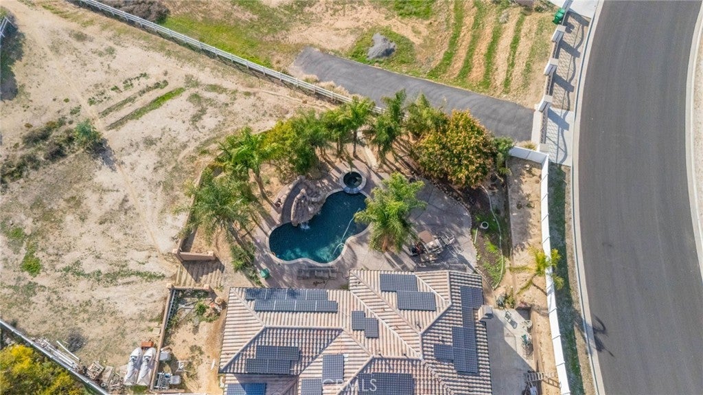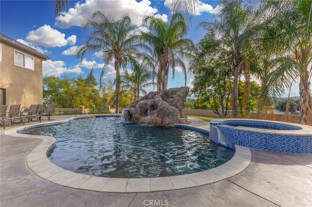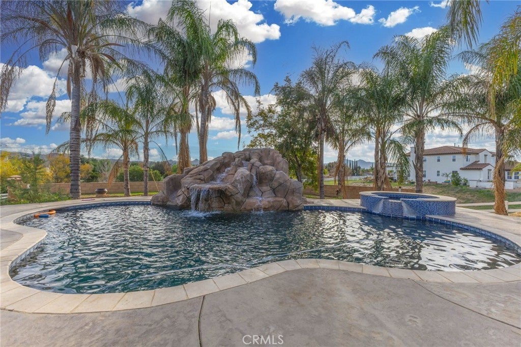 Elegant Tuscan home located in the highly sought-after “Bridle Creek” community. Set on a large corner lot, this home sits in an exclusive area of Mockingbird Canyon area with Great neighbors. This 3506 SF home on 1.53 acres features custom Steel & Glass Double entry doors, a Formal Living room with Plantation shutters and custom made blinds thoughout this home. There is a Formal Dining room, a New Fully Upgraded Kitchen with custom counters, center isle, white shaker cabinets with custom-hardware, a custom WOLF 6-burner Gas range, double ovens and and lots of counter space. Kitchen opens to Family room and separate sitting room and cozy Fireplace. Upstairs features a “Huge” Bonus room/Game room with warm fireplace and views of rolling hills, 4-large bedrooms, a Large master suite with walk-in closet and a view deck overlooking pool/waterfall and rolling hills. The Utility room/laundry room is upstairs-close to the bedrooms for convenience. Home features New tile flooring throughout the downstairs area with Wood hallways upstairs and carpet in bedrooms. Rear yard features a newly re-plastered Pebble-Tech pool featuring a water fall Grotto, slide and separate spa. Rear yard boasts 180 degree views of sunsets and hills, and rear yard providing steps down to expansive rear lot area with plenty of room for expansion on a quiet, peaceful yard for your year round enjoyment. Solar features 55 panels for "nill" on the electric bills.