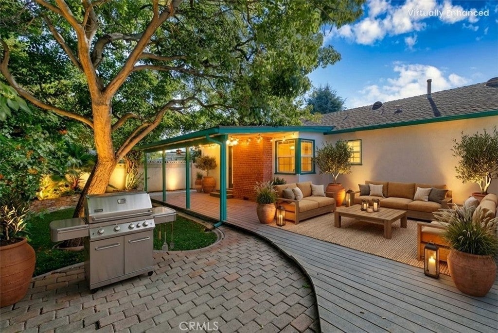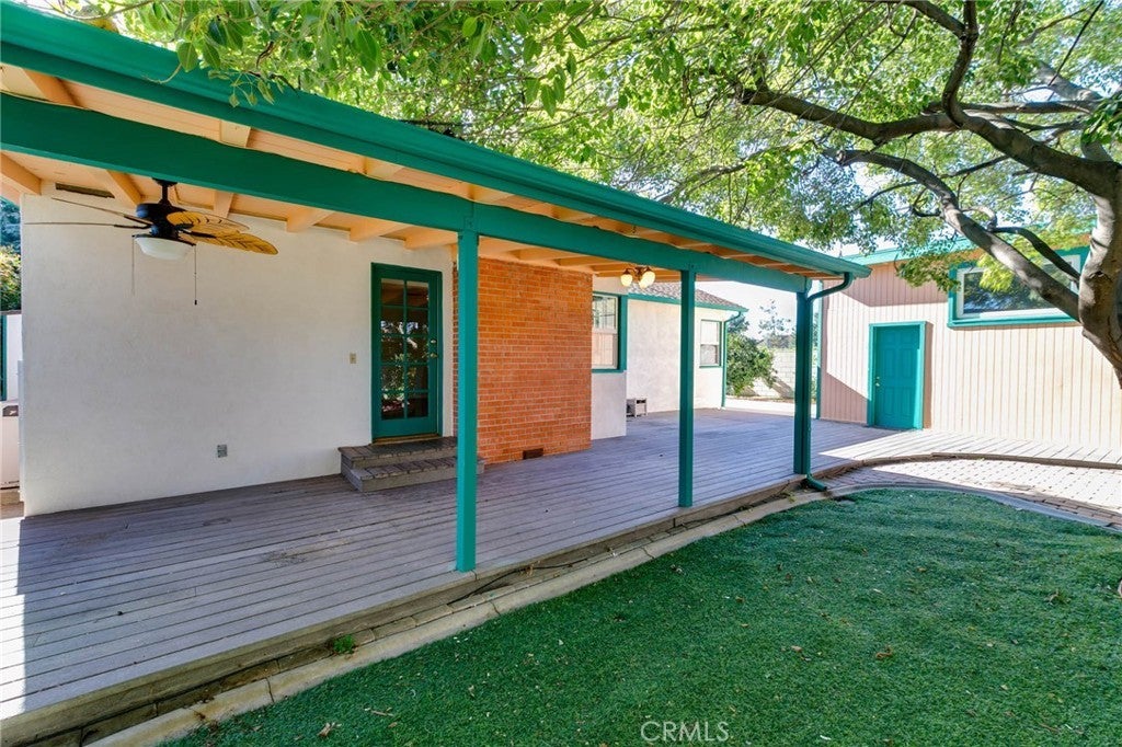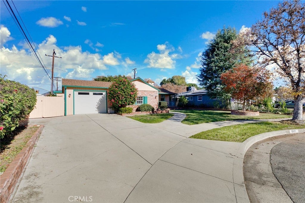 Welcome home to this charming single-story gem nestled on a corner lot in a quiet cul-de-sac, just walking distance to the elementary school. Freshly painted inside and out, this home is full of curb appeal and character. Inside, enjoy hardwood floors throughout with brand-new laminate flooring in the primary bedroom, dual-pane windows, crown molding, and LED recessed lighting that create a bright, welcoming feel. The living room features a large picture window and flows into the dining area with a built-in oak hutch. The kitchen offers granite countertops, oak cabinetry, a farmhouse sink, a brand-new dishwasher, and a built-in microwave. Gather in the family room with a classic brick fireplace and direct backyard access. The spacious primary bedroom features a built-in desk, along with two additional bedrooms, a full hall bath, and a separate laundry room with built-in cabinetry and a wine refrigerator. Enjoy the backyard with a covered Trex patio, ideal for relaxing or hosting guests. 1-car attached garage with pull-through access to an oversized detached 1-car garage with great ADU potential. Move-in ready and easy to fall in love with!