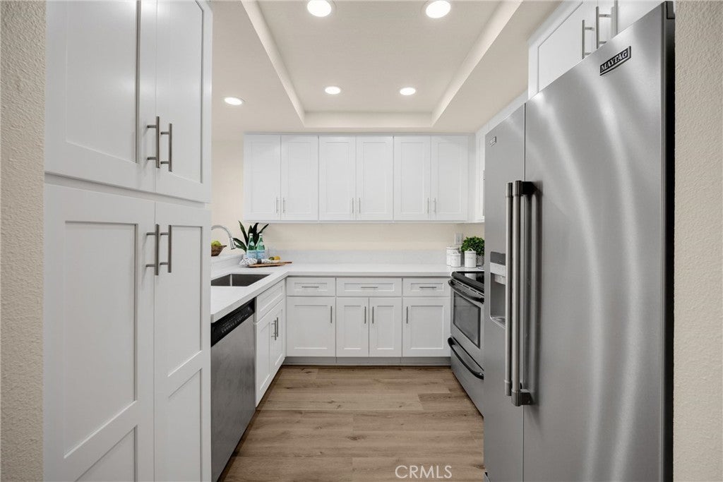 This is what a fresh start looks like. At 7268 Hermosa, the home has been thoughtfully updated to comfortable, functional, and easy to settle into-including converting the floorplan back to it's original three-bedroom layout. Every space has been renovated with intention, from the refreshed kitchen with brand new cabinetry and quartz countertops to the new LVP (luxury viny plank) flooring that ties the entire home together. All three bathrooms carry the same modern quartz finishes, creating a sense of continuity that is very appealing. The primary bathroom also features brand new shower with custom tile surround and glass door enclosure. A cozy fireplace with beautifully tiled surround anchors the living room area, adding warmth and a place to unwind. The result is a home that feels welcoming, move-in ready, and ready for whatever comes next. The 2 car-garage has direct access to the home and offers washer/dryer hook-ups. All of this in a gated community with 2 separate gates to the East and West side of the complex, for less traffic and congestion. Don't wait until after the holidays, come take a look at this gorgeous 3 bedroom condo in the center of Rancho Cucamonga today!