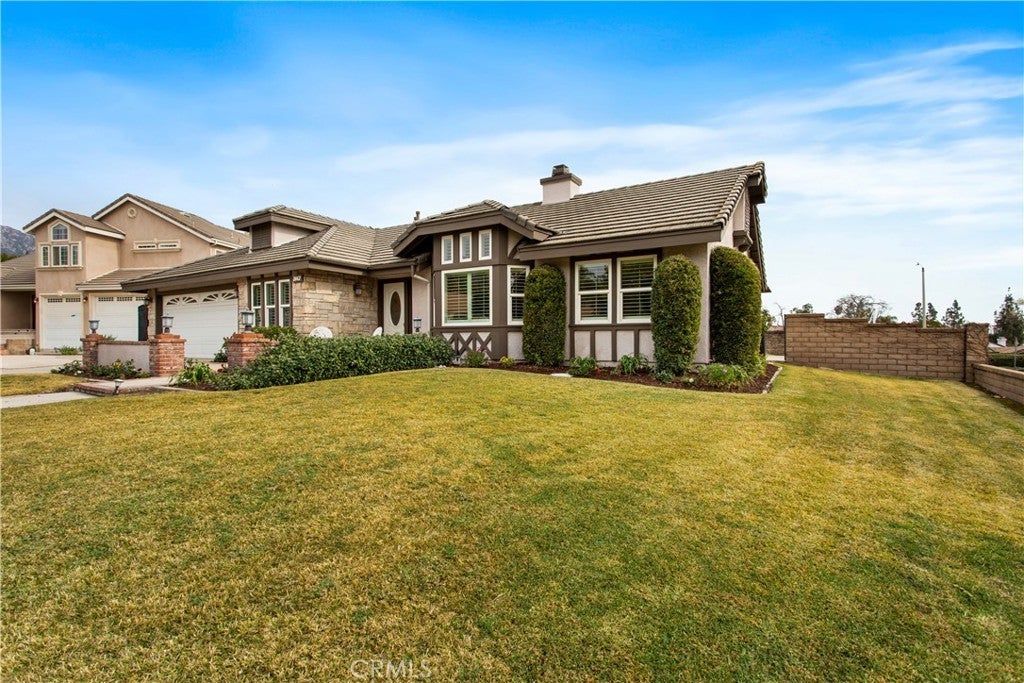 Welcome to this exceptional single-story home located in one of North Upland’s most sought-after areas; where homes of this caliber rarely become available. Set on a generous 9,850-square-foot corner lot, this well maintained home offers stunning mountain views from both the front and backyard, along with the privacy of having no homes behind you. The expansive grounds provide endless potential for outdoor living and family enjoyment. There is plenty of room to build a pool, an ADU or add-on and still have plenty of yard. A charming courtyard entry invites you inside, where vaulted ceilings, classic wainscoting, a double sided fireplace, and rich wood flooring immediately create a warm, elegant, and welcoming atmosphere. The dramatic bay window is framed with custom shutters, and is an ideal place to showcase your holiday tree or a grand piano. The thoughtfully designed layout flows seamlessly into the formal dining area, making this home perfect for entertaining. The remodeled kitchen serves as the heart of the home, showcasing rich cabinetry, granite counters, and center island. The kitchen opens to the family room, so you can stay connected while preparing meals or watching TV. French doors lead to the backyard, creating an inviting indoor-outdoor living experience. The family room has a tastefully designed fireplace that complements the kitchen finishes, and large windows overlooking the backyard. The home offers three spacious bedrooms. The primary bedroom has vaulted ceilings and a French door opening to the backyard. The primary bathroom has dual sinks, dual mirrored wardrobes, a soaking tub, and a walk-in shower. The hall bath has been elegantly remodeled and includes direct access to the backyard—an ideal feature for future pool plans or outdoor entertaining. The 3rd garage was professionally converted (without permits) and adds approx.152 sq. ft. of living area, offering a versatile space perfect for a home office, gym, playroom, or potential fourth bedroom. Additional highlights include RV parking as well as numerous upgrades such as updated windows, fresh paint, wrought-iron gates, storage shed, expanded patio area, and more. Whether you are seeking to downsize, transition from a two-story, or establish roots in a prestigious neighborhood with highly rated schools, this home delivers the perfect balance of luxury, comfort, and family-friendly living. Opportunities like this are rare—schedule your private showing and experience it for yourself.