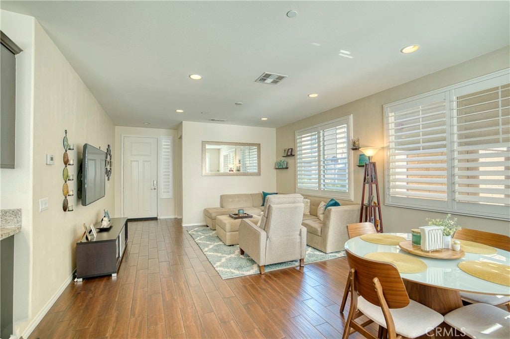 Welcome to this beautifully maintained two-story home located in the College Park Edgewood Community, offering 1,713 square feet of thoughtfully designed living space with 3 bedrooms and 3 bathrooms. This inviting home features an attached garage with EV charging, including a NEMA 14-50 240-volt 50A outlet, making it ideal for today's modern lifestyle. Inside, you will find a bright contemporary interior highlighted by fresh white paint, recessed lighting, plantation shutters, and a combination of tile and carpet flooring throughout the home, with carpeted stairs for added comfort. All bedrooms are located upstairs, creating a functional and private living layout. The open concept kitchen is designed for both everyday living and entertaining, featuring granite countertops, stainless steel appliances, and ample cabinetry. Interior appliances, including the refrigerator, washer, and dryer, will remain with the home, offering a convenient move-in-ready experience. The home also includes a water softener system, a reverse osmosis water filtration system, and a tankless water system providing enhanced water quality throughout the property. A dedicated upstairs laundry room adds convenience while the spacious primary suite offers a relaxing retreat with a large walk-in closet, dual sinks a soaking tub, a separate shower, and blackout Roman shades. Residents enjoy resort-style community amenities, including a spa, 2 swimming pools, including a lap pool, a clubhouse, gym, parks, playground, BBQ areas, dedicated ping pong areas, life size outdoor chess set, and beautifully maintained common spaces creating an ideal environment for recreation, relaxation, and community living.
