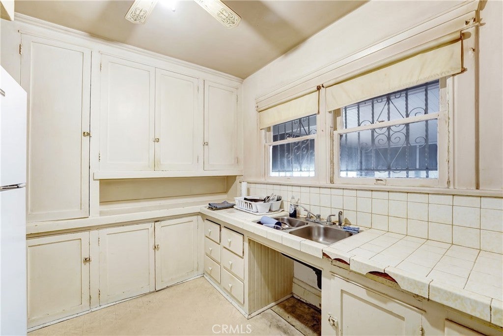 Charming, single-story home, located just East of Normandie Ave. and North of Vernon Ave. This home needs work but has wonderful original built-in cabinets, moldings, and glass door-knobs throughout the house. So much of it's vintage charm has been preserved. It's clean, functional, and ready for someone to bring it back to life. 2 bedrooms, 1 full bath. 1,218 sqft inside on a 6,017 sqft lot. Entry opens to large Living Room with fireplace. Living Room leads to nice-sized Dinning Room. Dinning Room leads to large Den area that can double as a bedroom. Kitchen is just off Dinning room with separate Laundry room that leads to spacious Sunroom. Hallway from Dinning and Living Room leads to 2 Bedrooms and full size bath. Both bedrooms feature walk-in closets. Large backyard with fruit trees. One car garage. So much potential with this wonderful home!