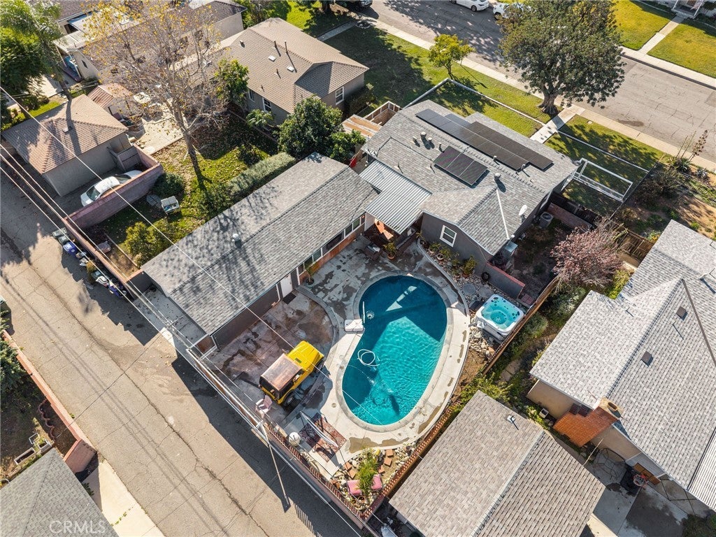 Welcome to this charming and cozy traditional single-family home located on a quiet street in Upland. Offering 3 bedrooms and 1.5 bathrooms across 1,028 square feet of living space, this inviting residence features warm wood flooring, an updated kitchen with upgraded countertops, cabinetry, stylish backsplash, and recessed lighting throughout. The bathrooms have been tastefully updated, and recent improvements include new windows and ceiling fans in the bedrooms. Situated on a spacious 7,215 square foot lot, the property shines with low-maintenance outdoor living, highlighted by a sparkling pool, above-ground spa, newly poured concrete sidewalks and entry areas, a welcoming front porch, and a rear patio perfect for entertaining. Adding exceptional versatility is a private guesthouse with its own entrance, bungalow charm, living area, kitchenette, bedroom, and bathroom—ideal for extended family, guests, or a home office setup. A detached garage with additional parking alongside, plus ample street parking, enhances convenience. Located near Upland High School, shopping, and everyday amenities, this home offers comfort, flexibility, and an excellent lifestyle opportunity.