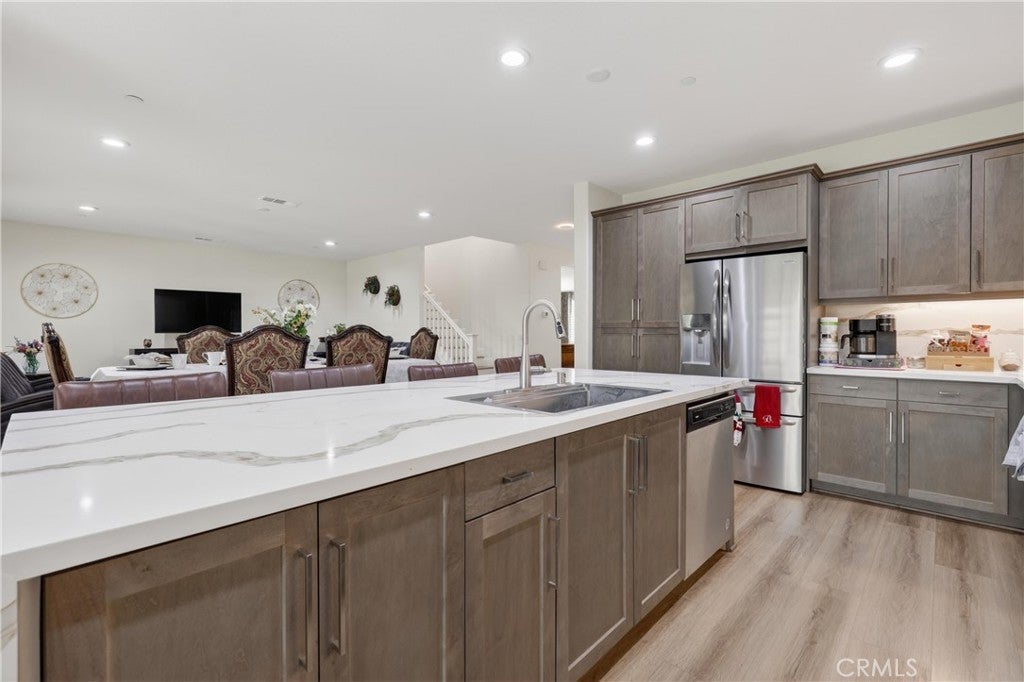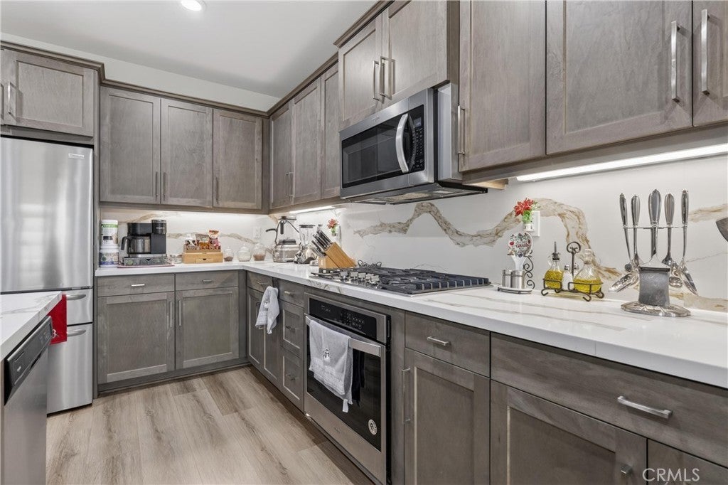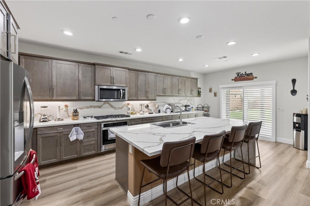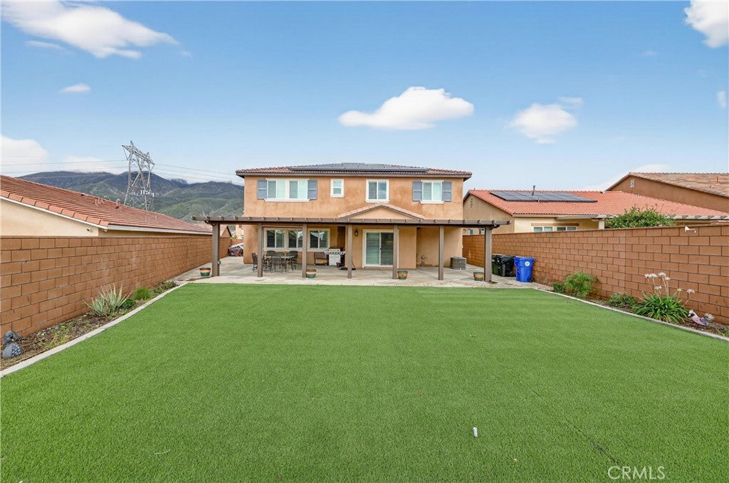 Stunning Upgraded Home in Gated Mountain View Community – North Fontana Welcome to this beautifully upgraded 2021-built single-family home located in the desirable gated Mountain View community of North Fontana. Featuring 5 bedrooms, 3 bathrooms, and 2,722 sq ft of open, light-filled living space, this home offers the perfect blend of modern design, comfort, and energy efficiency. The inviting floor plan showcases cathedral ceilings, new flooring throughout, and custom shutters on every window. The upgraded kitchen is a showstopper with new cabinetry, quartz countertops, and an open layout ideal for entertaining and everyday living. A convenient downstairs bedroom and full bathroom provide flexibility for guests, multigenerational living, or a home office. Upstairs, you’ll find spacious bedrooms and a relaxing primary suite. Step outside to enjoy a low-maintenance lifestyle with turf grass in both the front and backyard, new landscaping, a water drip irrigation system, and an oversized aluminum patio cover—perfect for outdoor dining and gatherings. Additional highlights include rented solar panels for energy efficiency, a built-in pest control system, security system, and a tandem garage with epoxy flooring offering plenty of storage. Situated on a 7,492 sq ft lot in an upscale gated community, this move-in-ready home is close to shopping, dining, and major commuter routes. Don’t miss this opportunity to own a modern, energy-efficient home in one of North Fontana’s most sought-after neighborhoods!