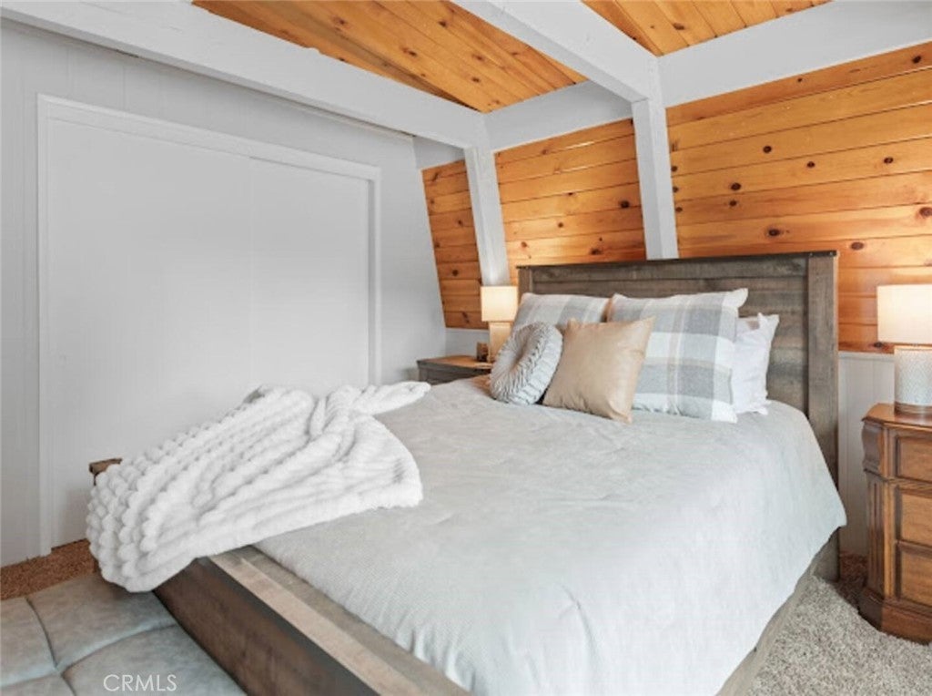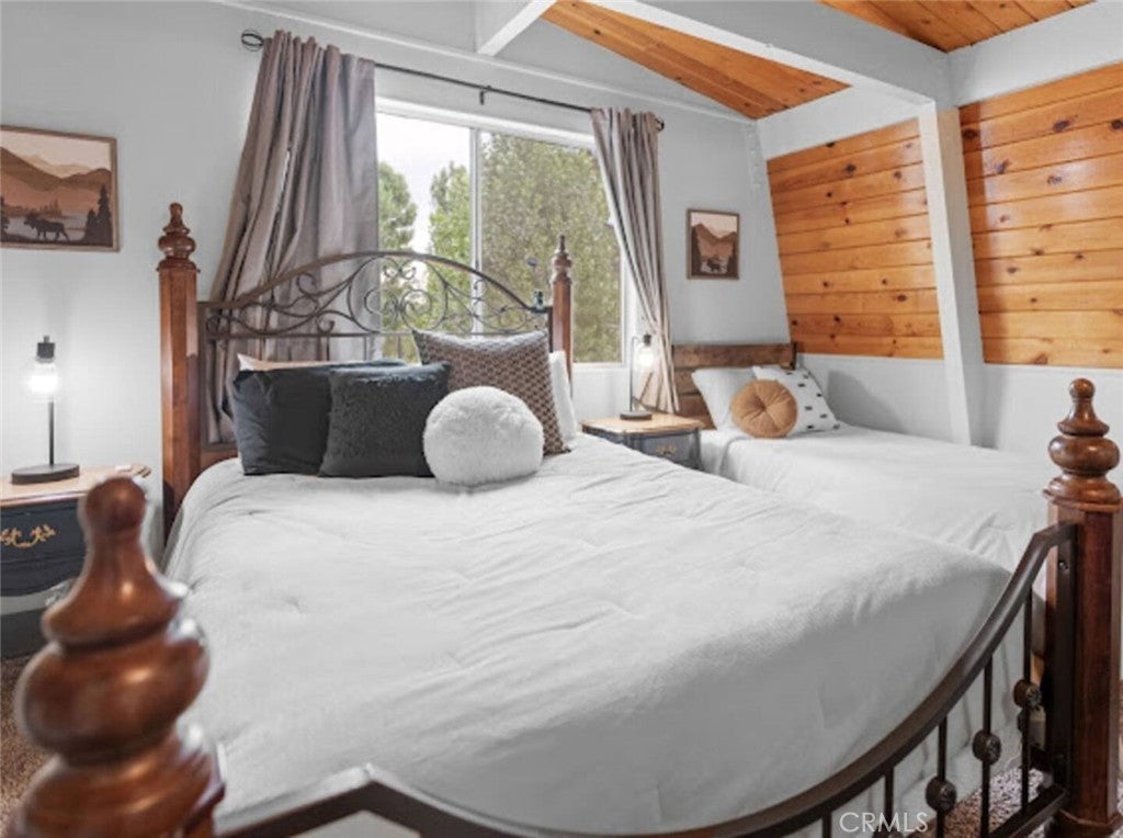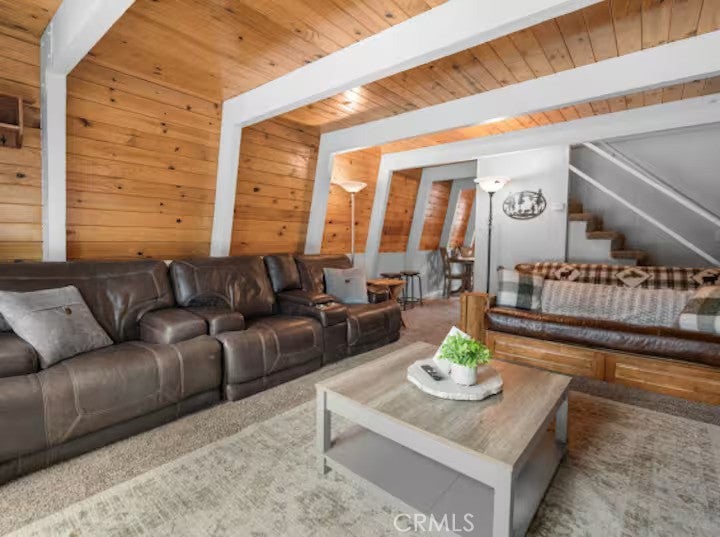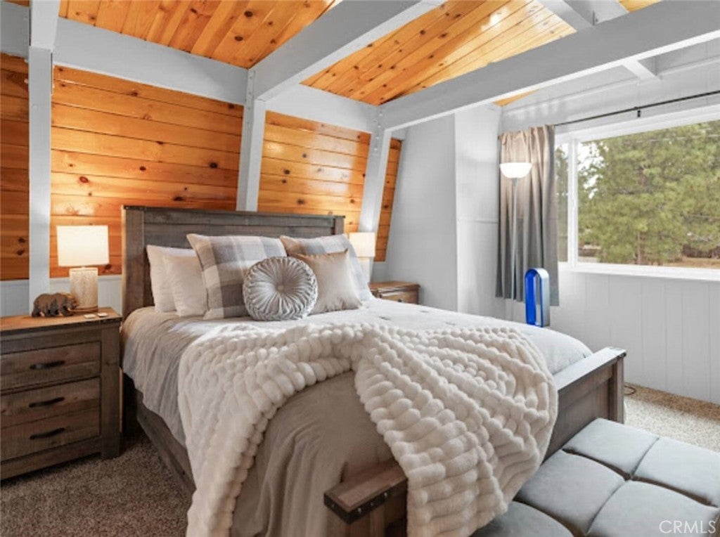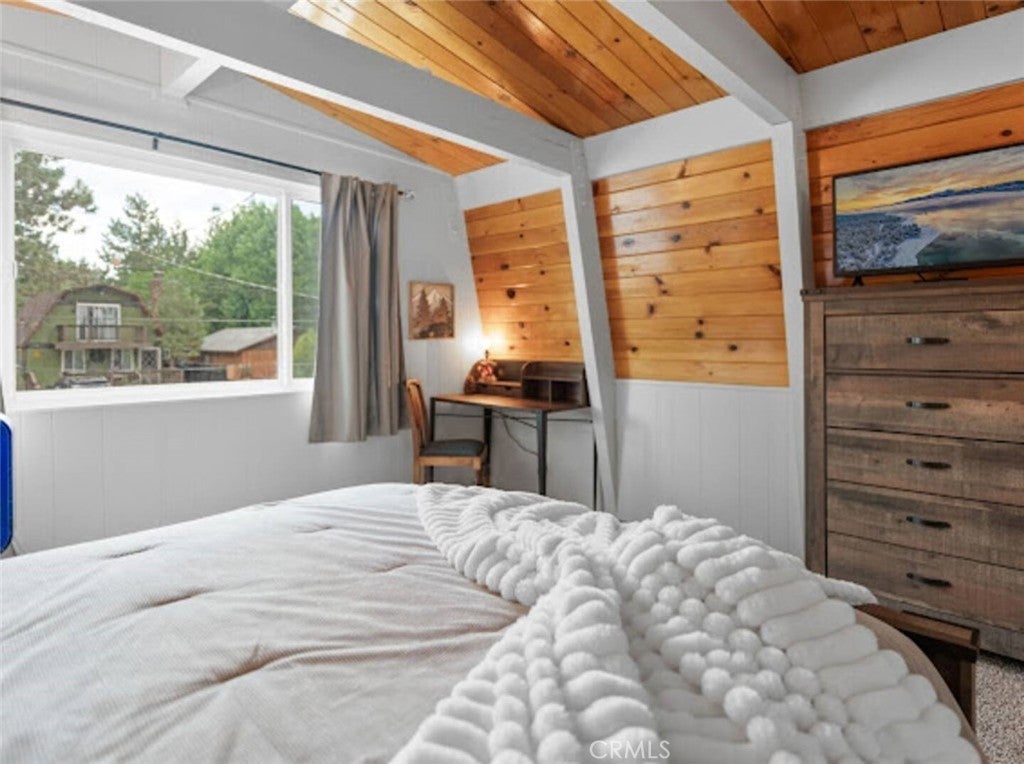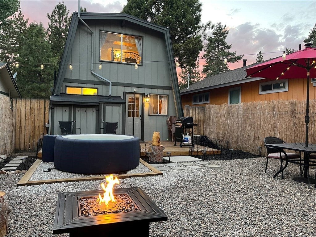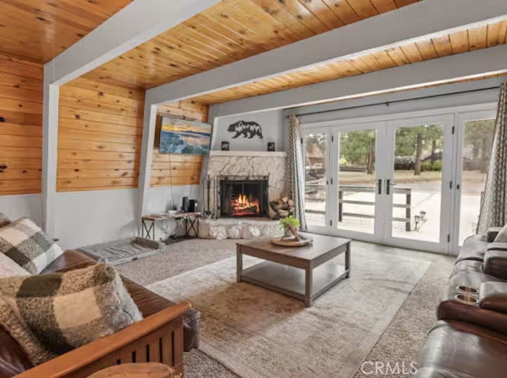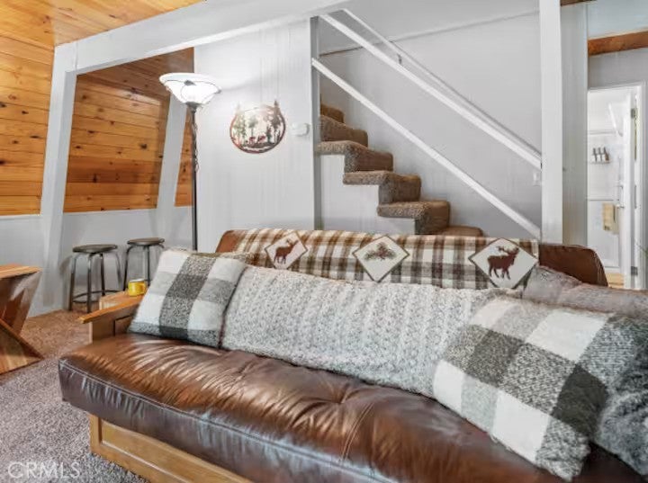 SELLER IS MOTIVATED! Welcome to this warm Gambrel home nestled in the very popular Peter Pan area of Big Bear City. This 2 bedroom, 1 bathroom home features a perfect blend of comfort and style. With natural light, beamed T&G ceilings, topped off with a cozy wood-burning fireplace that creates a warm in the woods cabin desired feel. Enjoy the large welcoming living room that is completed with a wood burning fireplace. Kitchen comes with stainless stain appliances, plenty of cabinet space for storage and ample amount of counter space. Sit back and relax on the wooden deck in the sizable backyard. Perfect for those mid day summer barbeques. The home is minutes away from the lake and downtown big bear. This is a perfect get away for the family or a great investment for an investor who would like to Airbnb it.