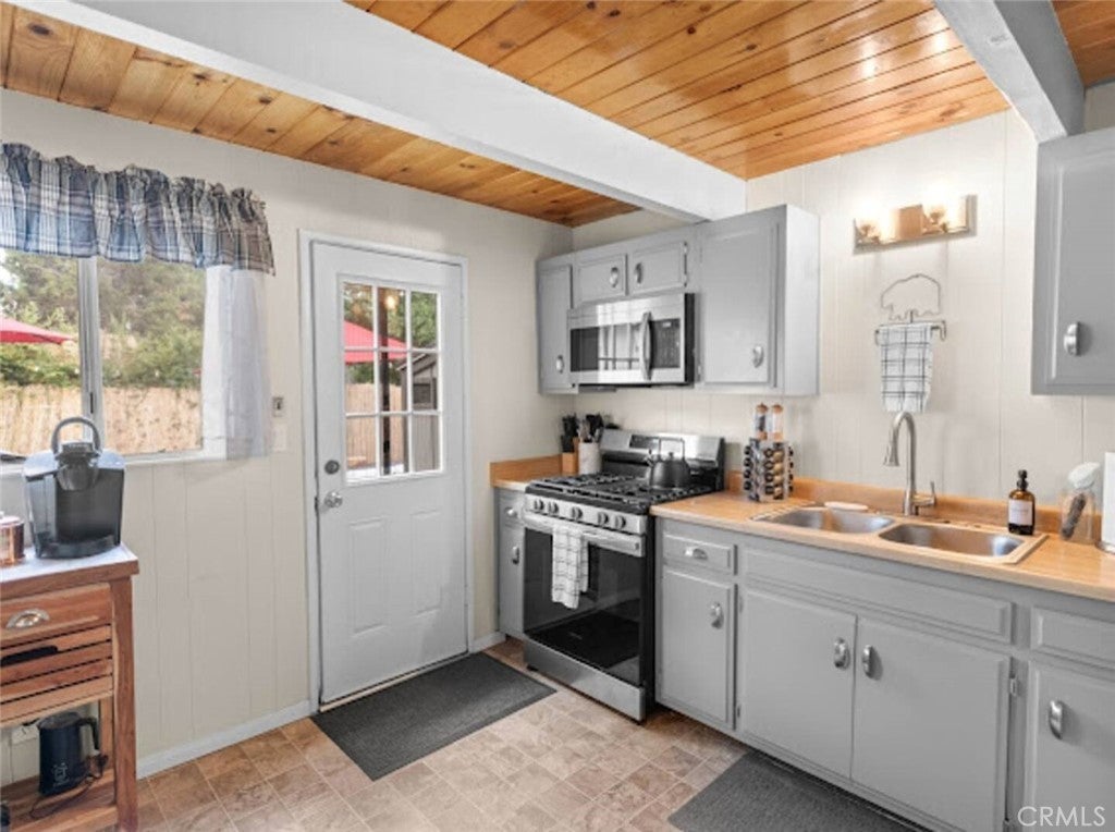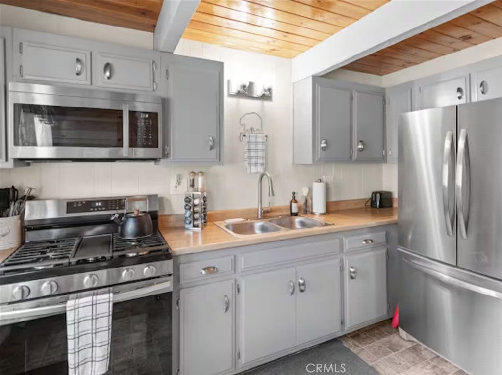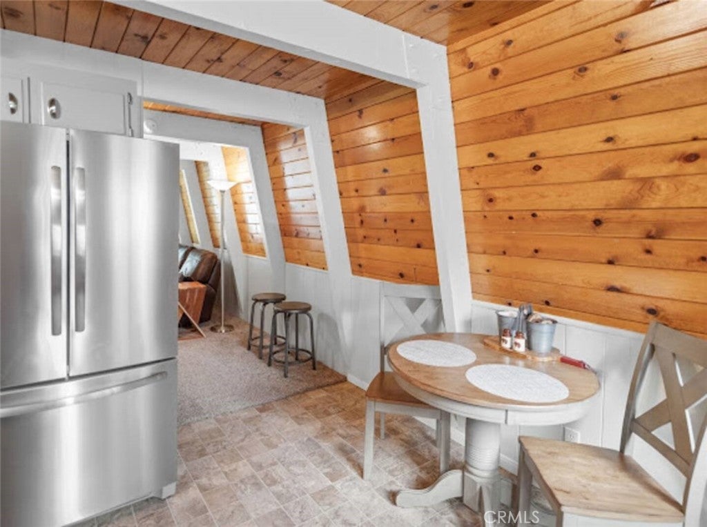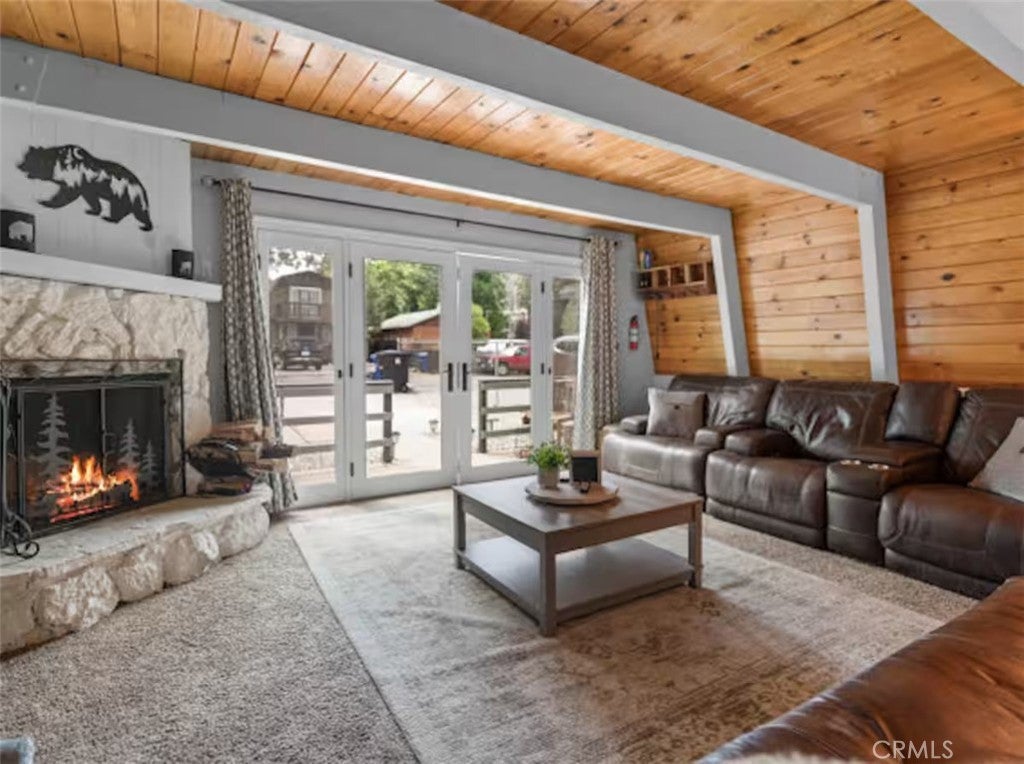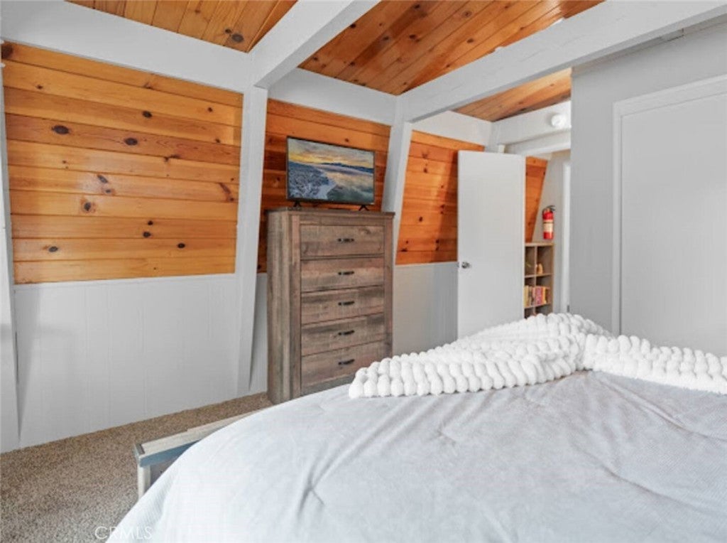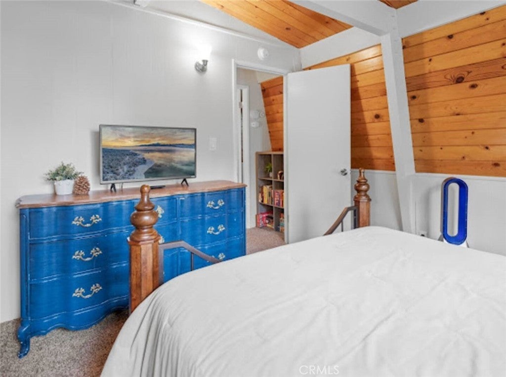 SELLER IS MOTIVATED! Welcome to this warm Gambrel home nestled in the very popular Peter Pan area of Big Bear City. This 2 bedroom, 1 bathroom home features a perfect blend of comfort and style. With natural light, beamed T&G ceilings, topped off with a cozy wood-burning fireplace that creates a warm in the woods cabin desired feel. Enjoy the large welcoming living room that is completed with a wood burning fireplace. Kitchen comes with stainless stain appliances, plenty of cabinet space for storage and ample amount of counter space. Sit back and relax on the wooden deck in the sizable backyard. Perfect for those mid day summer barbeques. The home is minutes away from the lake and downtown big bear. This is a perfect get away for the family or a great investment for an investor who would like to Airbnb it.