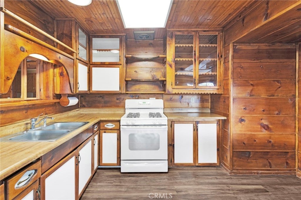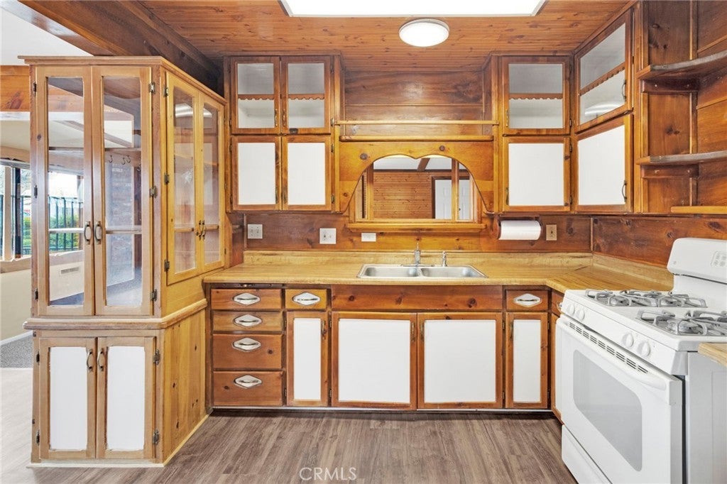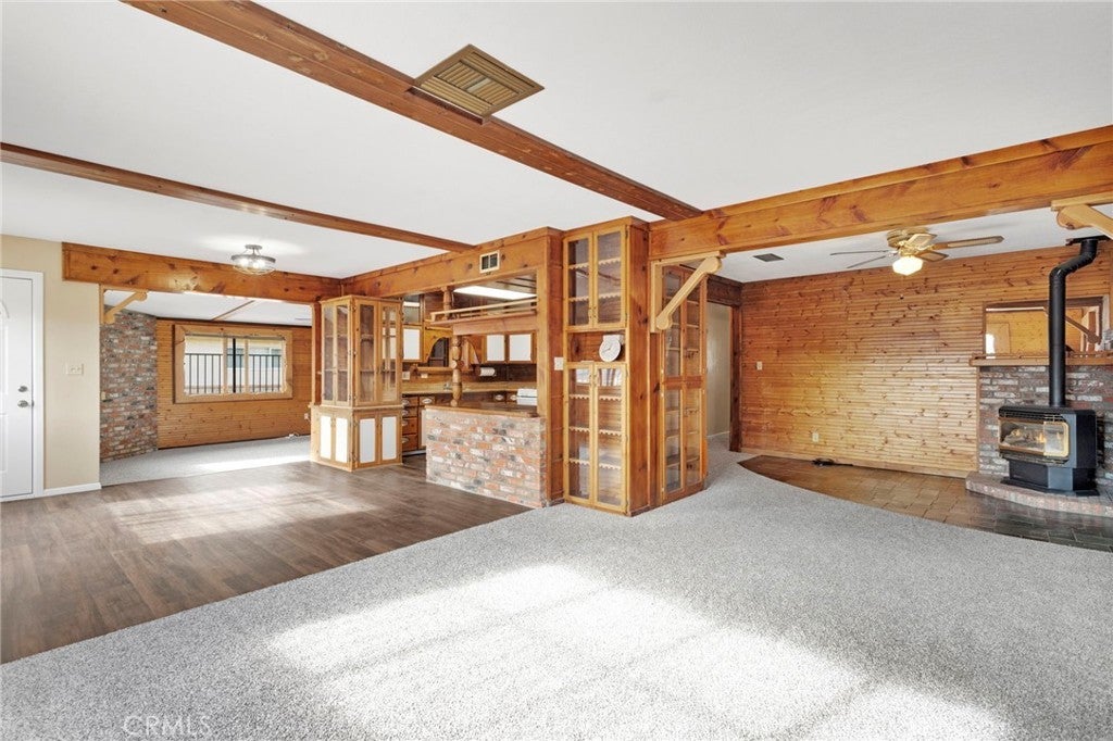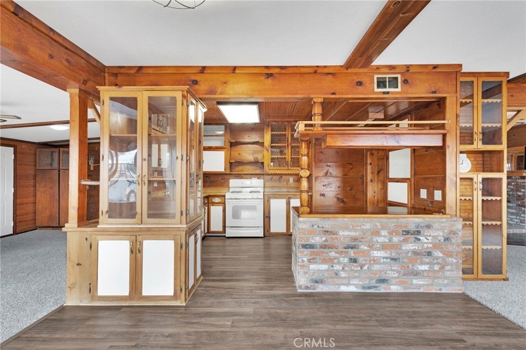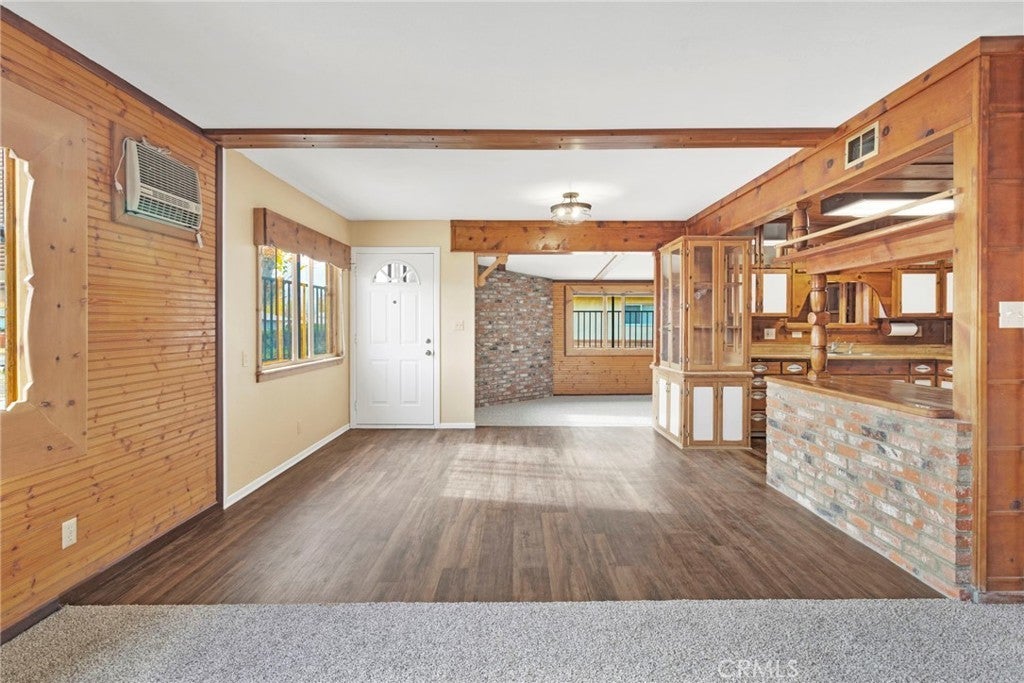 Warm, inviting, and full of character, this charming single-story home blends rustic charm with functional living spaces. The spacious family room features rich wood accents and exposed beams, creating a cozy atmosphere ideal for gatherings or quiet evenings at home. The thoughtfully designed kitchen showcases custom wood cabinetry and ample counter space, offering both style and practicality. The primary bedroom includes built-in storage and a comfortable layout, while additional rooms provide flexibility for guests, home office use, or hobbies. Situated on a generous lot, the property offers plenty of outdoor space for entertaining, gardening, or future possibilities. Conveniently located near schools, shopping, and major roadways, this home presents a unique opportunity for buyers seeking character, space, and potential in Victorville. Buyer to verify all information.
