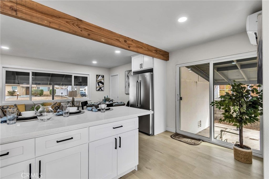 Welcome to this stunning 3-bedroom, 2-bathroom home in the vibrant city of San Bernardino! Fully remodeled and move-in ready, this property features brand-new flooring throughout, a modern kitchen with sleek countertops, and stylishly updated bathrooms. Sitting on a sprawling 7,000+ square foot lot, the home boasts a spacious backyard perfect for entertaining, with plenty of parking and endless potential. The rear detached garage offers an excellent opportunity to be converted into an ADU (Accessory Dwelling Unit) for additional income or multi-generational living. The large front yard adds charm and functionality, while the prime location—close to freeways and shopping centers—ensures convenience at your doorstep. Don’t miss out on this incredible property that combines modern living with future possibilities!