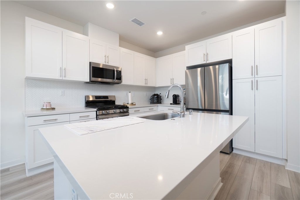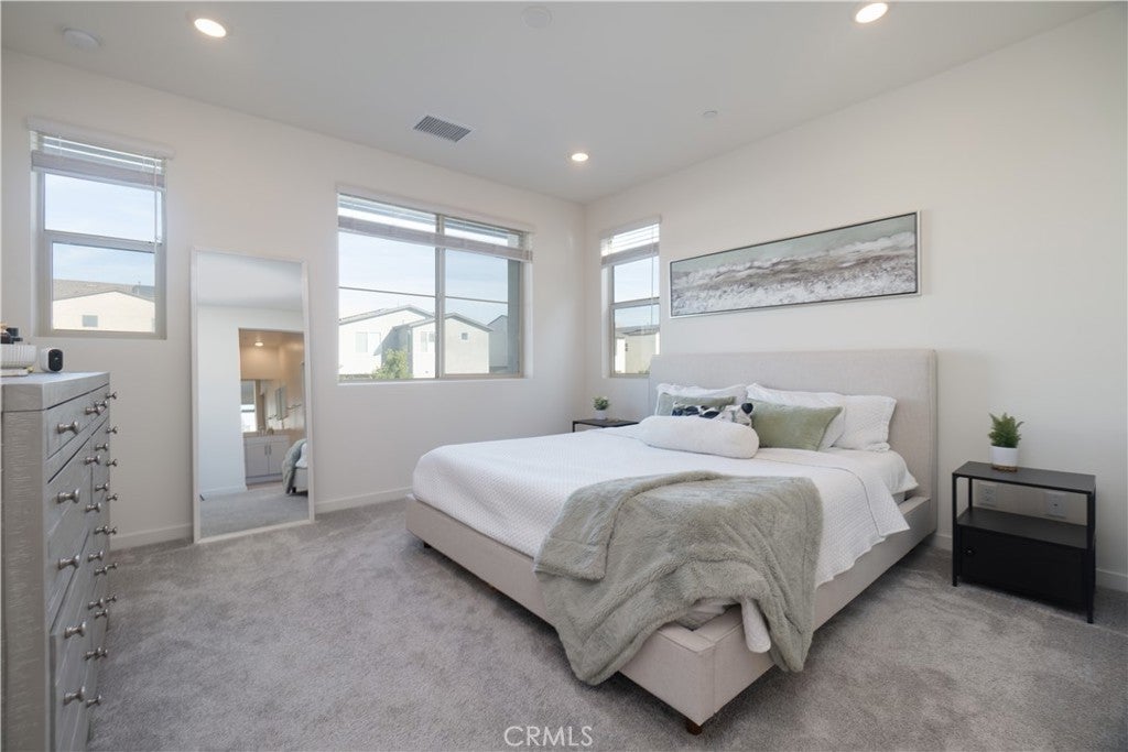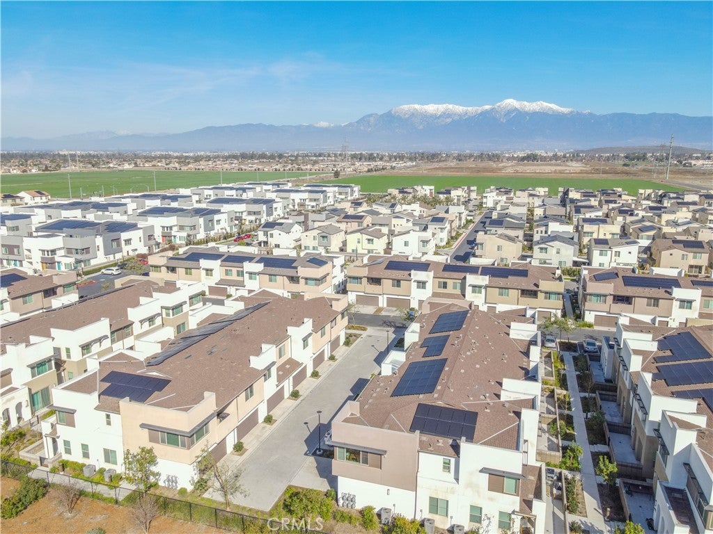 Welcome to Neuhouse Community by Landsea of Ontario Ranch, a posh neighborhood prized for its abundant amenities designed for vibrant living! Enjoy the pristine park, swanky pool house that is an aquatic oasis, dog park for large and small fur babies, a sophisticated tot lot, open air fitness stations, expansive covered picnic patio with grilling stations, and much more! Built in 2022, 3610 E. Pollack Street #4 is a chic, two-story residence featuring a contemporary aesthetic of clean lines and open living space. A sleek modern design defines the white kitchen with a prominent breakfast island, stainless steel appliances, and stylish herringbone tile back-splash. You can appreciate a seamless transition between the kitchen and living room that creates an inviting, airy space for cooking and socializing. The dining area features a sliding glass door to the patio, allowing for easy Al Fresco entertaining under the stars. Relax in the spacious primary suite, complete with a walk-in closet, en-suite bathroom, shower with seating ledge, private toilet room door and dual sinks. Sophisticated style meets modern intelligence in this solar-powered home. You get the full benefit of the seller's investment with paid off solar panels and can enjoy reduced utility costs from day one! More appealing items include recessed lighting, dual pane windows, custom window coverings, upgraded thicker carpeting, a second level laundry room - and all household appliances are included! The 2-car attached garage is finished. This home is ready to move into and perfect for your fun loving, active So Cal lifestyle! Located near the new Ontario Sports Empire Complex, massive new 200 acre sports and entertainment district date of completion Fall 2026 for all the sports enthusiasts!