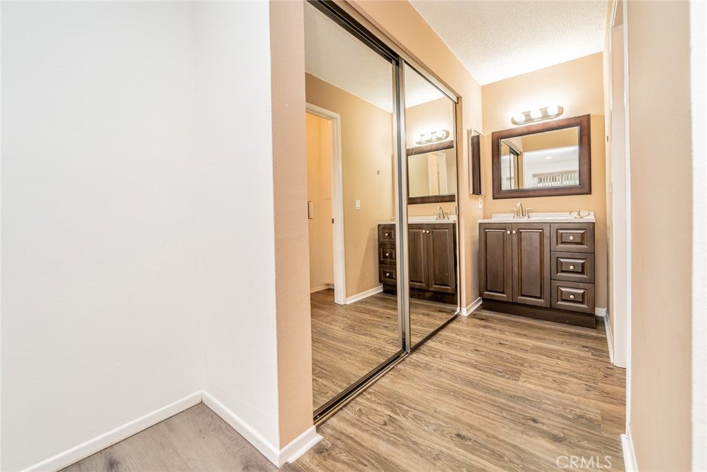 Welcome to this adorable Condo located in the heart of Corona. This upper-level 2-bedroom, 2 bath home offers 1,035 sq ft of living space and is conveniently close to the 91 Freeway with easy access to Orange County. Recent upgrades include Fully upgraded kitchen with new stainless-steel appliances, brand new vinyl flooring and fresh interior paint. Spacious primary and secondary bedrooms feature sliding mirrored closet doors, while the kitchen offers a walk-in pantry and cozy dining nook. Enjoy indoor-outdoor living with a private balcony off the living room showcasing beautiful mountain views. Enjoy beautiful mountain views from both the windows and the private balcony. Residents enjoy the sparkling HOA pool and recreation room. HOA dues include common area maintenance ,WATER and TRASH. This home also comes with one covered carport and additional assigned parking. Additional features include attached washer and dryer hookups, extra storage closets, and a prime location. The community is just minutes from Brentwood Park, Border Lake, Stater Bros, and several popular dining options. This move-in-ready condo is a fantastic opportunity don’t miss it!