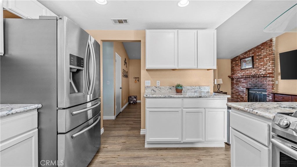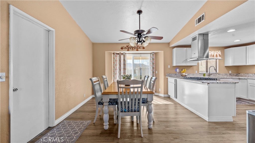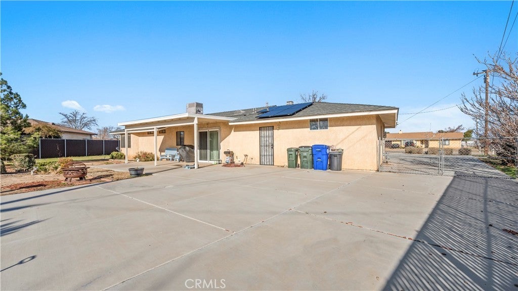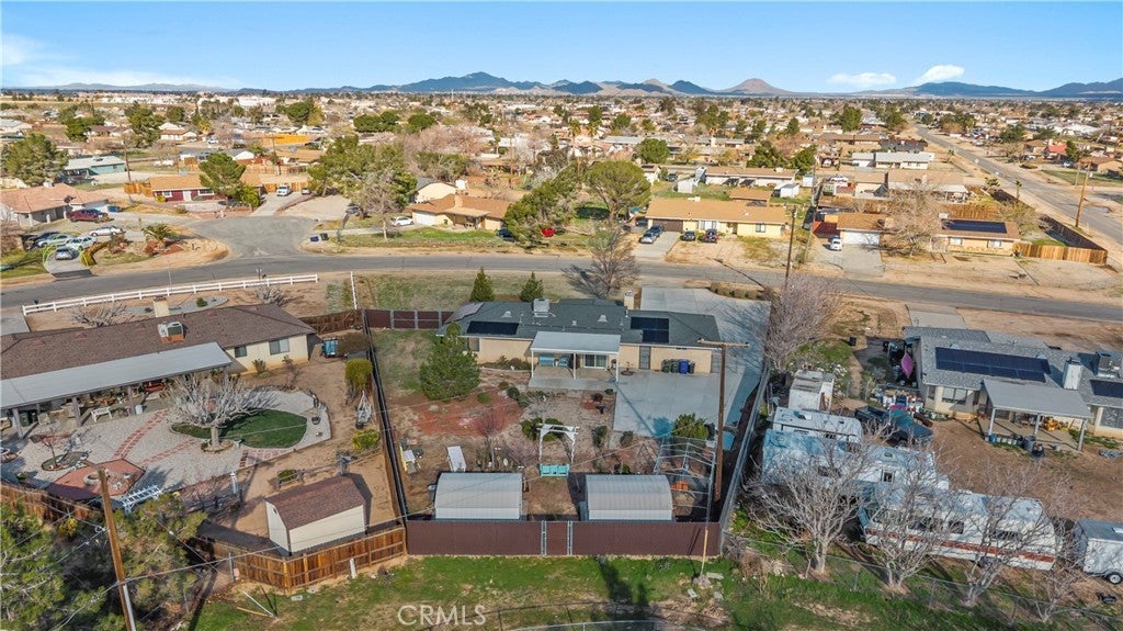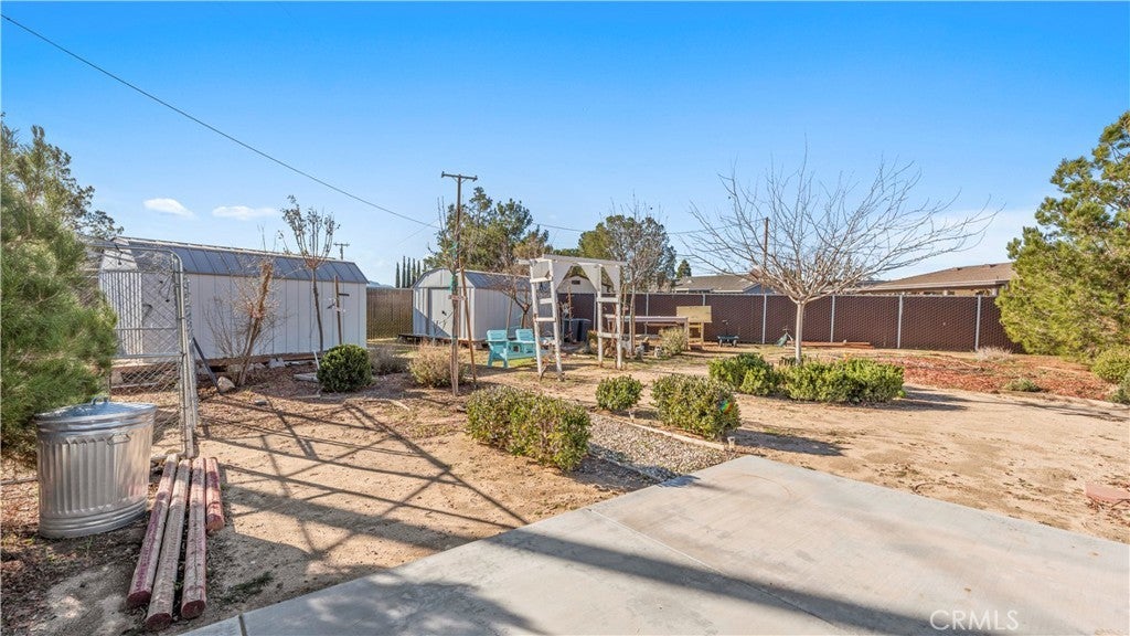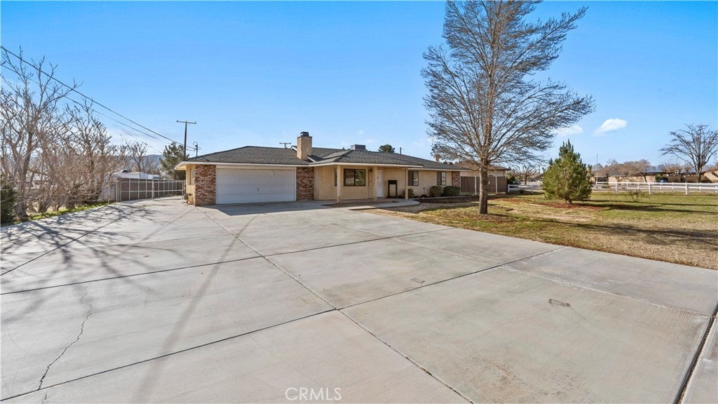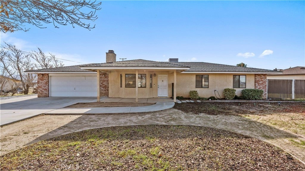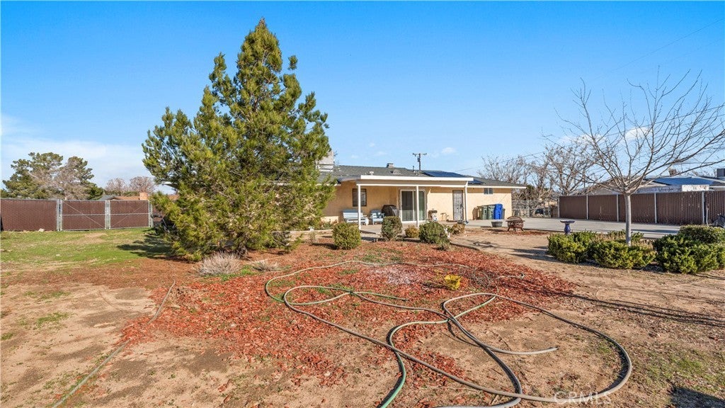 This beautiful single-story home sits on a fully usable, fenced large lot offering wide-open space rarely found at this price point. A long concrete driveway with gated access provides ample parking for RVs, trailers, toys, or multi-vehicle households. Inside, enjoy a bright and welcoming layout with a spacious living room centered around a classic brick fireplace—ideal for cozy family nights or hosting guests. The dining area flows seamlessly into the kitchen, featuring white cabinetry, granite countertops, stainless steel appliances. Central HVAC and solar system. The primary bedroom offers comfort and privacy with its own bathroom and dedicated closet space, while two additional bedrooms are well-sized and versatile. Step outside to a backyard built for memories—covered patio, expansive concrete areas, mature trees, garden space, chicken-coop, and multiple storage sheds. Whether entertaining, gardening, or planning future expansion for ADU. This property offers true Apple Valley freedom with desert and mountain views with convenience shopping nearby. ~Must See~!!!