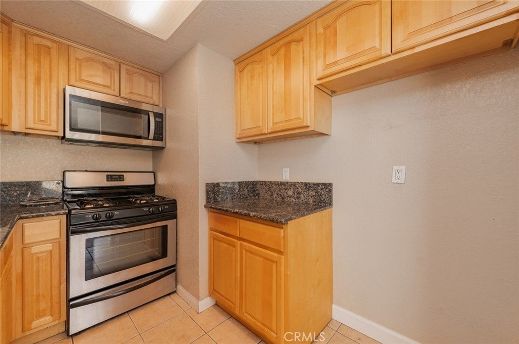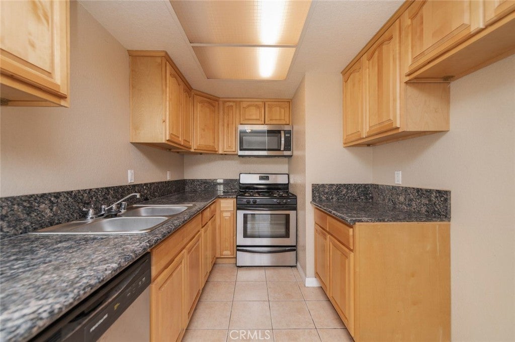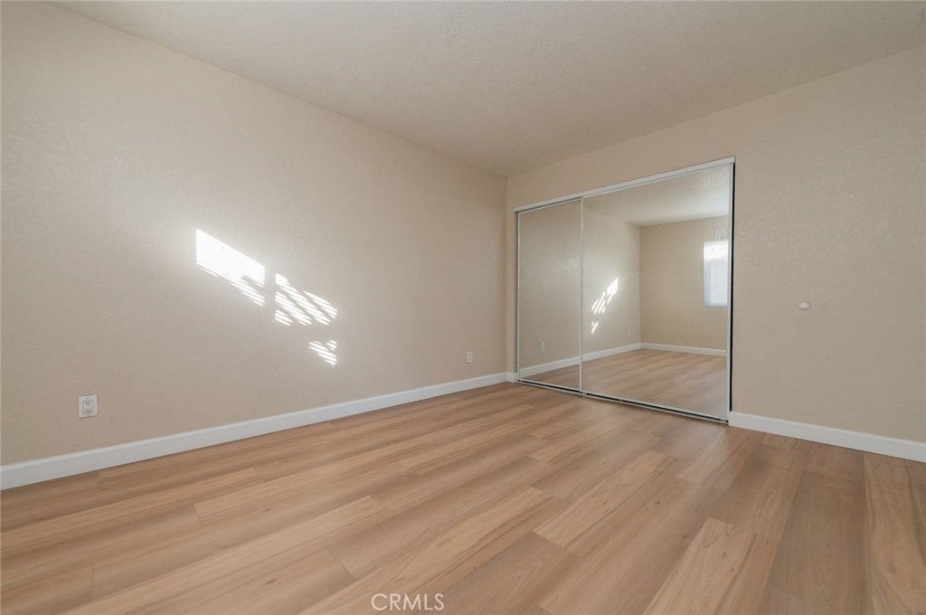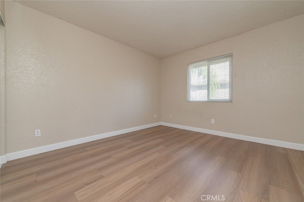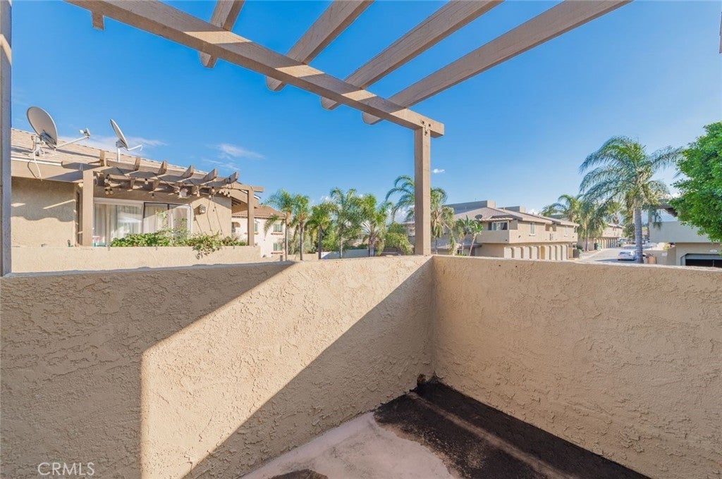 This turnkey 2bed / 1bath UPPER LEVEL END UNIT is located in a gated community in central Corona. It has central heating and cooling. Open kitchen with granite countertops and stainless steel appliances. Spacious living room with private balcony. Full bath has granite counter. Both bedrooms have mirrored closet doors, wood laminate flooring throughout. This Condo comes with a one-car garage and one assigned parking space. There is also a community pool and BBQ area.