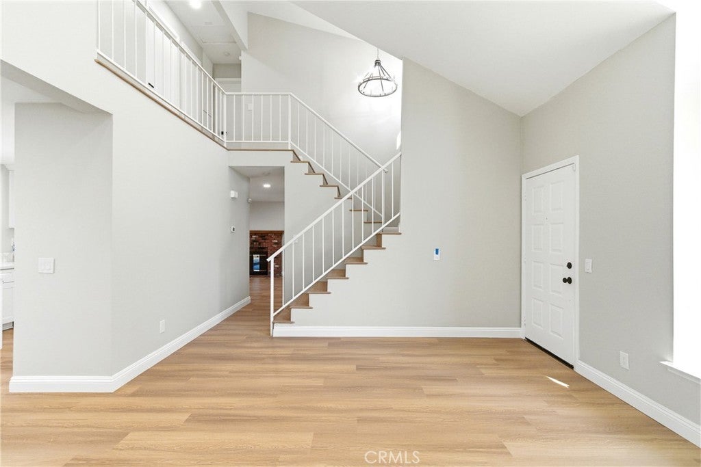 This charming, and spacious home is located in the BEAUTIFUL city of NORTH SAN BERNARDINO. This two-story home consists of 3 bedrooms and 2.5 bathrooms with a beautiful open floor plan that will wow you, your guests and family. Completely remodeled and turnkey, with NEW paint inside and outside, NEW custom laminate floors, NEW quartz countertops, NEW baseboards, NEW kitchen cabinets, NEW hardware, NEW dishwasher, NEW modern faucets, A classic fireplace, NEW custom kitchen backsplash, NEW roof and so, so much more. The 2 bathrooms have also been remodeled. A large floor plan that consists of a formal living room, dining area, family room and kitchen that utilizes every square inch of this place making it feel much bigger than it is. Three ample sized bedrooms with the primary having its own full bathroom and a large balcony that offers both city and mountain views. A LARGE sized backyard , which is a great place to entertain friends and family during the seasons and also offers possible RV access. It comes with an attached 2 car garage. This is a wonderful home in a very established neighborhood that is just getting better and better. Conveniently located ONLY minutes away from the 215,15 and 210 freeway perfect for commuters. Schools. Shopping and Cal State San Bernardino are close by. This is a rare and wonderful opportunity to own a remodeled home in the beautiful city of NORTH San Bernardino! Contact your agent for a showing TODAY!