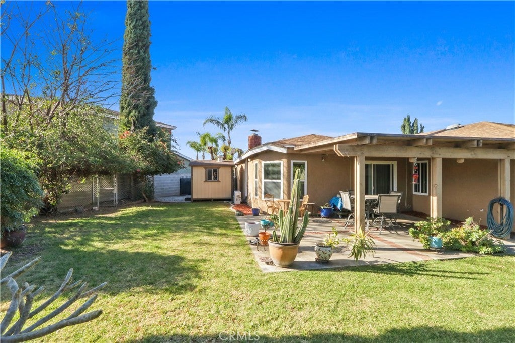 Welcome to this inviting single-level home, perfectly situated at the end of a peaceful cul-de-sac in a quiet, established neighborhood. This well-maintained residence offers four spacious bedrooms and two updated full bathrooms, providing comfort and flexibility for families or those needing extra space. The home features a generous 20x20 family room complete with its own HVAC mini-split system and a cozy wood-burning fireplace, ideal for relaxing or entertaining. A separate living room includes a classic gas fireplace, creating a warm and welcoming atmosphere. The large kitchen is a dream for cooking enthusiasts, boasting granite countertops, ample cabinetry, and plenty of workspace. An indoor laundry area adds everyday convenience. Step outside to the expansive backyard, featuring mature fruit trees, open landscaping, and abundant space for gardening, outdoor activities, or simply enjoying the outdoors. The property owner has completed several major updates within the last ten years, including the bathrooms, electrical panel, and HVAC system. Conveniently located near shopping centers, public transportation, and the 60 Freeway, this home offers both comfort and accessibility.