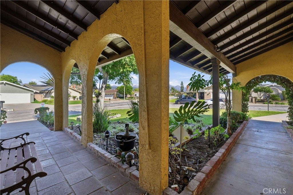 New Price—One of the Best Values in Covina! This beautifully maintained single-story Spanish Ranch home sits on a desirable corner lot and offers 4 bedrooms, 2 bathrooms, and 1,562 sq ft of functional living space in a prime Covina neighborhood. From the welcoming arched entry and landscaped front yard with tranquil koi pond to the spacious interior layout, this home blends charm and comfort throughout. Tile flooring runs through the main living areas, and the upgraded kitchen features granite countertops, ample cabinetry, and an included refrigerator, washer, and dryer for added convenience. A built-in mini kitchenette/flex prep station adds versatility—ideal for entertaining, extended family use, beverage service, or a coffee bar. The dining area opens through sliding glass doors to a private backyard designed for both relaxation and entertaining. Enjoy the covered BBQ alcove with custom brick surround, above-ground spa under a gazebo, four storage units, and fresh interior paint throughout, including ceilings. The oversized garage includes an upgraded workshop floor and enclosed overhead storage with pull-down ladder access. With strong showing activity and multiple offers received, this home is now competitively positioned to capture the next wave of spring buyers. Inventory in this price range is limited—don't miss this opportunity.