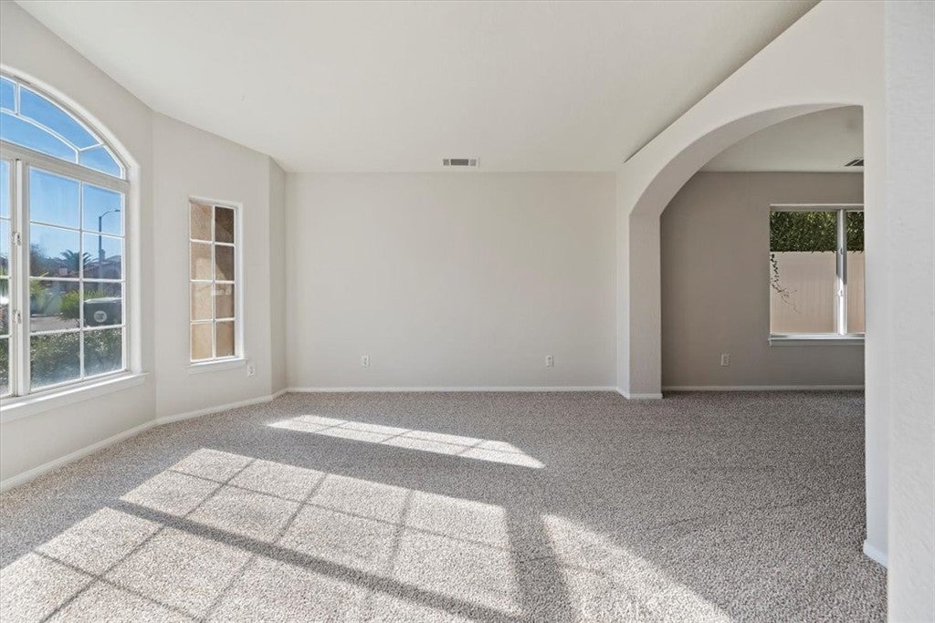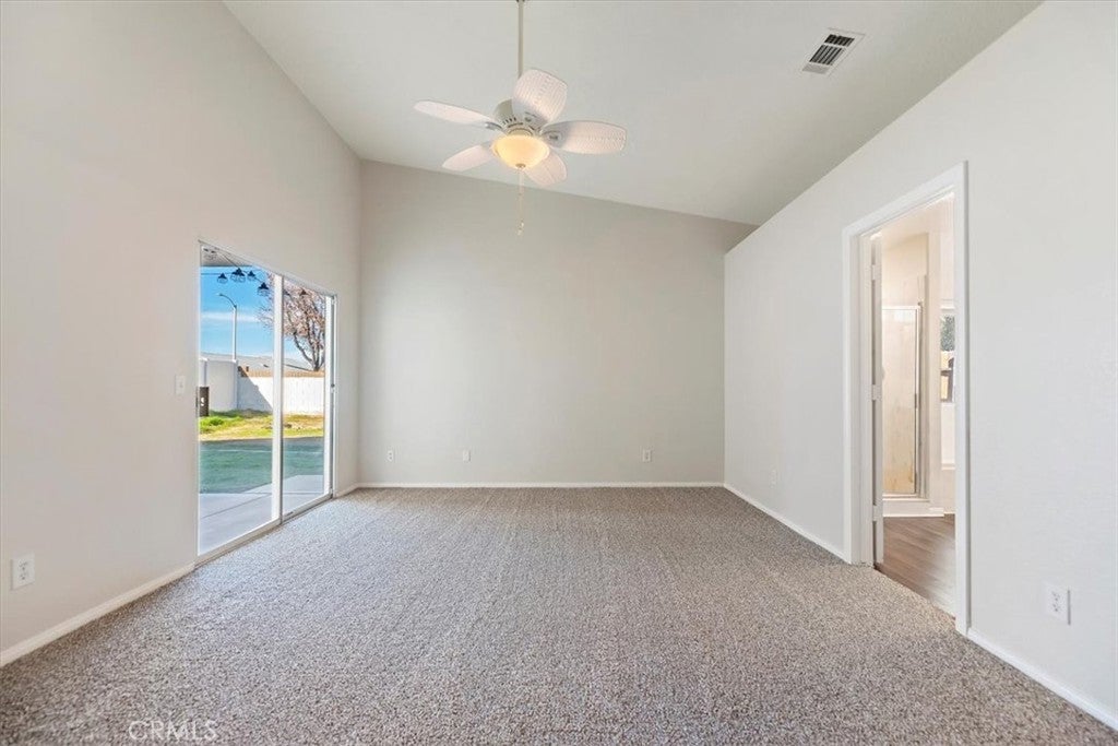 This pristine single-story residence situated on a cul-de-sac! The home features striking vaulted ceilings, arched doorways, and an open floor plan. The entire home is adorned with brand new carpeting and has been freshly painted throughout. There is a spacious living room in addition to a separate dining room. You will appreciate the gourmet kitchen, which has been newly remodeled and includes quartz countertops, brand-new stainless-steel appliances, a stainless farm sink, and fresh paint. Ample counter space is provided with an oversized island. The kitchen seamlessly connects to the family room, which boasts a cozy fireplace. The master suite is generously sized, and the master bathroom includes a separate shower and tub, along with a walk-in closet. All secondary bedrooms are well-sized, featuring fresh paint, new carpeting, and ceiling fans. A large indoor laundry room offers additional cabinet space. The backyard presents endless possibilities and also includes a shed. This home is ideally located near a variety of shopping options, restaurants, schools, and is conveniently close to the 15 freeway. Make sure to schedule your appointment today, as this property is unlikely to remain on the market for long.