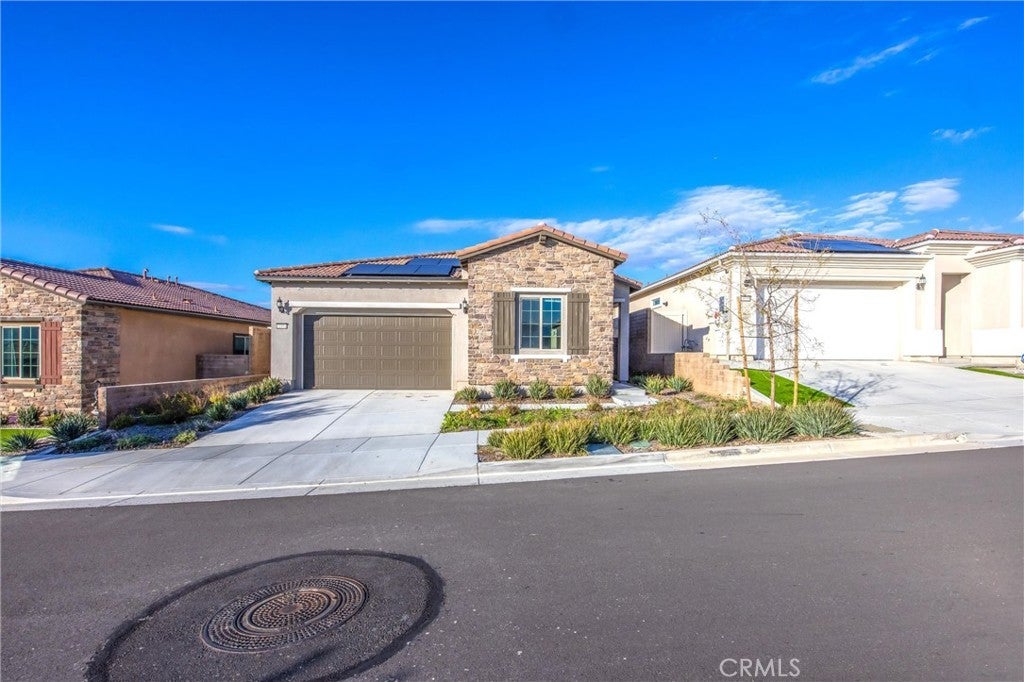 Welcome to this single story home located in the highly desirable Terramor Community within a unique combination of both 55+ residences as well as family homes. This property is designated as 55+, providing a peaceful lifestyle, beautifully landscaped backyard, easy to maintain all while still being part of a vibrant, diverse neighborhood. Amenities include Pickle ball courts, pool, gym, and so much more! The home offers a bright and open floor plan with spacious living areas ideal for everyday comfort and entertaining. The kitchen includes builder upgrades that include granite kitchen counter tops and Deep brown cabinets. The kitchen opens seamlessly to the main living space and features ample cabinetry and counter space. Generously sized bedrooms provide flexibility, while the primary suite serves as a private retreat. Enjoy outdoor living with a spacious backyard ready for you to design and create your entertainers dream. Additional highlights include FULLY PAID OFF SOLAR —owned, not leased—offering immediate energy savings!. Conveniently located near parks, shopping, dining and with easy freeway access, this home combines lifestyle, efficiency, and location. A rare opportunity to own a move-in-ready home with paid-off solar in a sought-after Corona community.