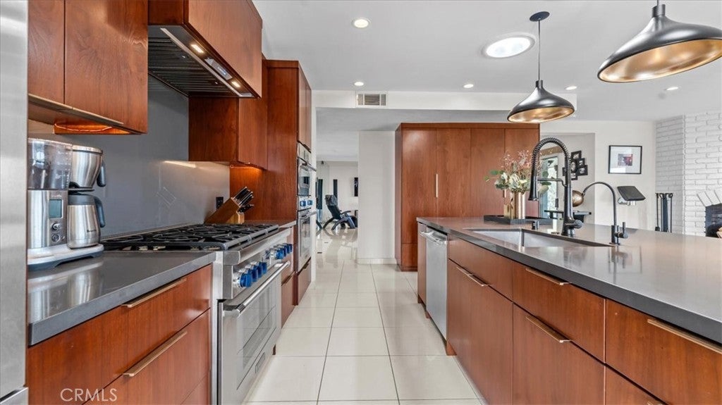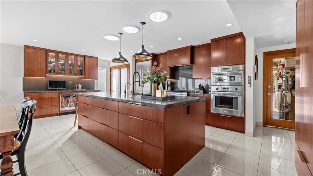 Perched within the prestigious hillside enclave of Claraboya, this contemporary European-inspired single-story residence offers an extraordinary blend of architectural refinement, thoughtful renovation, and sweeping natural vistas. Designed to embrace both comfort and sophistication, the home unfolds with expansive open living spaces, walls of glass, and an effortless indoor-outdoor flow that captures canyon views by day and sparkling city lights by evening. At the heart of the residence, a recently remodeled kitchen reflects both artistry and function. Custom mahogany cabinetry, sleek quartz surfaces, and a full suite of professional-grade Thermador appliances create a setting that will inspire any culinary enthusiast. A generous center island anchors the space, inviting conversation and connection. Whether hosting an intimate dinner or a lively gathering, this kitchen was designed to perform beautifully. The adjoining living and dining areas are bathed in natural light and framed by panoramic windows that celebrate the surrounding hills. Large format tile flooring enhances the modern aesthetic while maintaining a sense of warmth and continuity throughout. The single-level floor plan offers ease and flexibility, with spacious bedrooms, beautifully appointed baths, and a luxurious primary suite complete with a spa-style shower and a substantial custom wardrobe room. Outdoors, expansive patio spaces invite year-round enjoyment. A covered terrace, manicured grounds, and a private putting green create an exceptional setting for entertaining or quiet reflection. The views stretch across canyons and toward distant city lights, offering a daily reminder of the home’s elevated setting. Claraboya is cherished for its proximity to the Claremont Wilderness Park and Thompson Creek Trail, where hiking, cycling, and morning walks are part of everyday life. Just minutes below the hill, the vibrant Claremont Village offers acclaimed restaurants, boutique shopping, coffee houses, and the cultural enrichment of the Claremont Colleges. Convenient access to the 210 freeway provides a seamless commute to Los Angeles and surrounding employment centers, while Ontario International Airport is within easy reach for frequent travelers. This is more than a home. It is an opportunity to experience one of Claremont’s most sought-after neighborhoods, where natural beauty, architectural quality, and lifestyle converge in remarkable fashion.