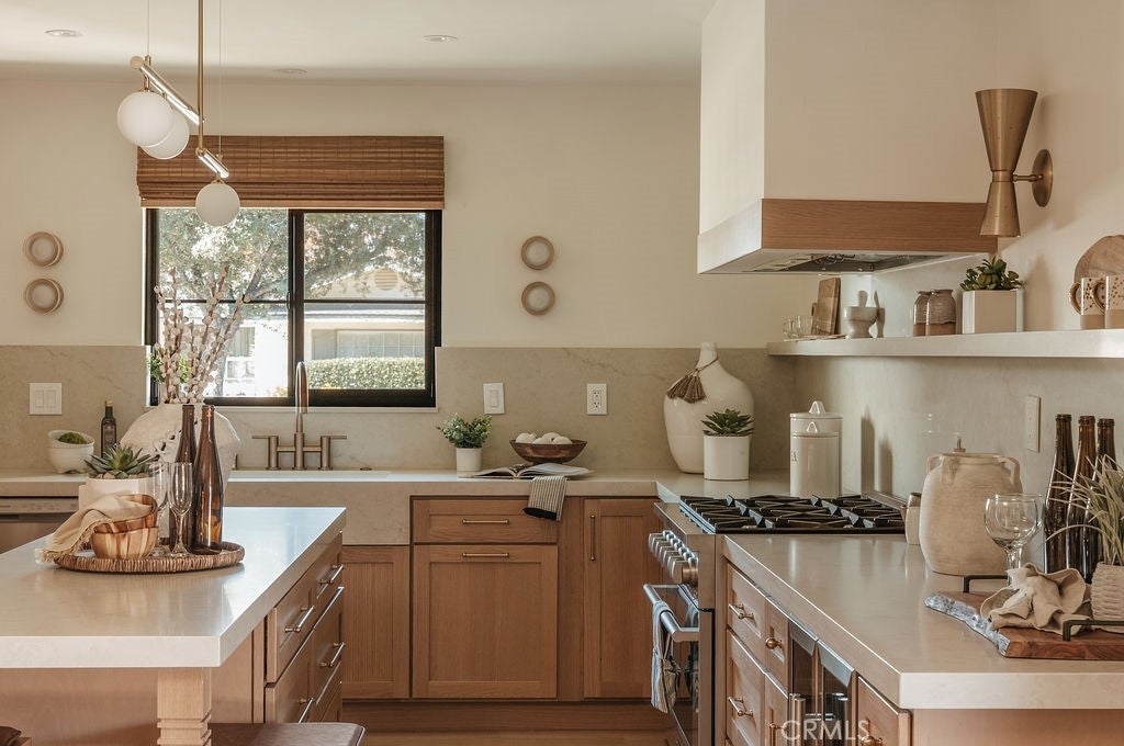 Welcome to 1283 Hillsdale, a beautifully reimagined single-level modern organic residence situated on a prime corner lot in one of Claremont’s most desirable neighborhoods, just minutes from Claremont Village.This thoughtfully updated home blends natural materials and timeless design, highlighted by warm wood accents, natural exterior stone, and a striking double-door entry that creates an inviting first impression. The corner-lot setting offers expansive parking and rare RV access, providing exceptional convenience and flexibility.Inside, the open and light-filled floor plan features engineered real wood flooring throughout, enhancing the home’s sense of warmth and flow. The residence offers three spacious bedrooms and two beautifully remodeled bathrooms, each finished with custom tile, stone, and designer-selected fixtures.The chef’s kitchen serves as the heart of the home, showcasing quartzite countertops, Culinary features include a commercial-grade 36 inch range with custom hood, and a dedicated coffee bar. A wine bar with wine refrigerator completes the space, ideal for both everyday living and entertaining. Expansive bifold doors open from the family room to the backyard, creating seamless indoor-outdoor living. Additional upgrades include recessed lighting, new door hardware throughout, white oak doors, and curated window treatments. The backyard is designed for relaxation and enjoyment, featuring a sparkling pool, landscaped patio areas, and ample space for outdoor dining and entertaining. Pride of ownership is evident throughout, with every detail thoughtfully curated. Conveniently located near Claremont Village, award-winning schools, parks, and local amenities, this move-in-ready home offers an exceptional opportunity to enjoy refined living in a highly sought-after location. We welcome you for a private tour of 1283 Hillsdale Drive.