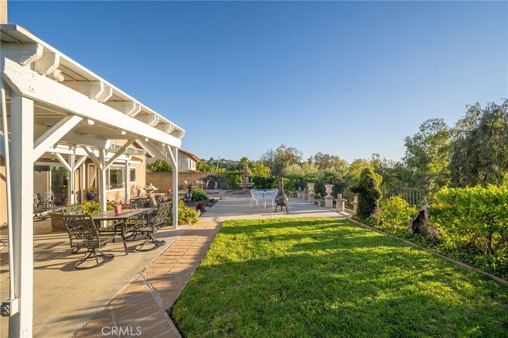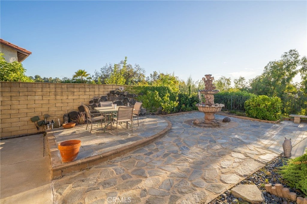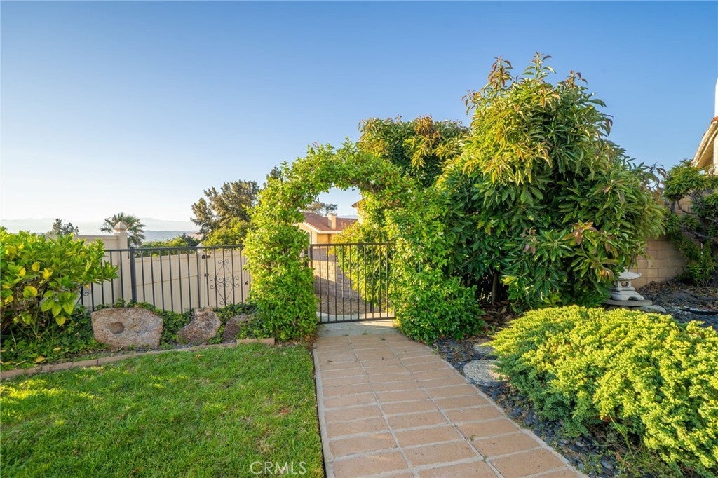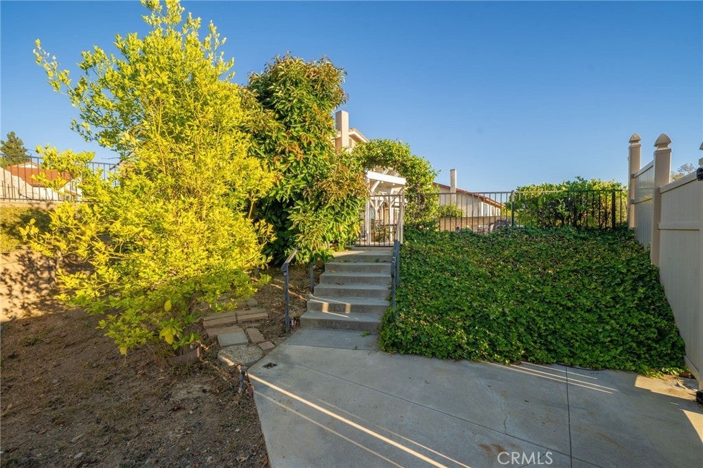 This stunning tri-level home is nestled in the hills of Diamond Bar. Offering breathtaking panoramic views and perfectly positioned to capture gorgeous sunsets from the serene backyard or the private upstairs balcony. This residence includes a highly desirable downstairs bedroom and full bath, ideal for guests or multi-generational living. When entering the home you step into the formal living room where rich wood flooring and custom crown molding add timeless elegance and character. Step down into the formal dining area which leads you to the kitchen and family room, perfect for entertaining. The kitchen is a true delight, featuring oak cabinetry, granite countertops, custom backsplash, stainless steel appliances including a 5-burner stove, brand new sink, faucet, and garbage disposal, also an eat-in dining area. Upstairs, the primary suite is a peaceful retreat with double-door entry, two large closets (including a walk-in), and additional hidden storage closet behind the paneled wall, and a private balcony with unobstructed views of the surrounding hills. The ensuite bathroom boasts dual sinks, and a jetted bathtub with a window to take in the gorgeous view. Two additional guest bedrooms and a full bathroom with a tub/shower combo complete the top level. Accessibility features are present in every bathroom, promoting safety and ease of movement. Thoughtfully upgraded, the home includes dual-paned windows, a 4-ton AC unit, stair climber to provide added ease for navigating between levels, new security system with cell phone access, indoor laundry, and the home has been repiped with PEX plumbing. The downstairs bathroom features a walk-in shower with new brass fixtures. Outside you will enjoy a tranquil and private front courtyard with a mature lemon tree, a covered backyard patio, and a lower terrace that could be perfect for a future jacuzzi or fire pit. The backyard is adorned with an array of fruit trees including orange, avocado, peach, nectarine, pomegranate, and loquat. Landscaped beautifully with a large fountain, it is a retreat you never have to leave home to enjoy. A 2-car garage and extended driveway offer plenty of parking, as well as additional parking that is readily available along the street with long stretches of curb for ample space for your guests. Located near top-rated schools, shopping, dining, and easy access to the 60 and 57 freeways, this exceptional home offers comfort, convenience, and stunning natural beauty.