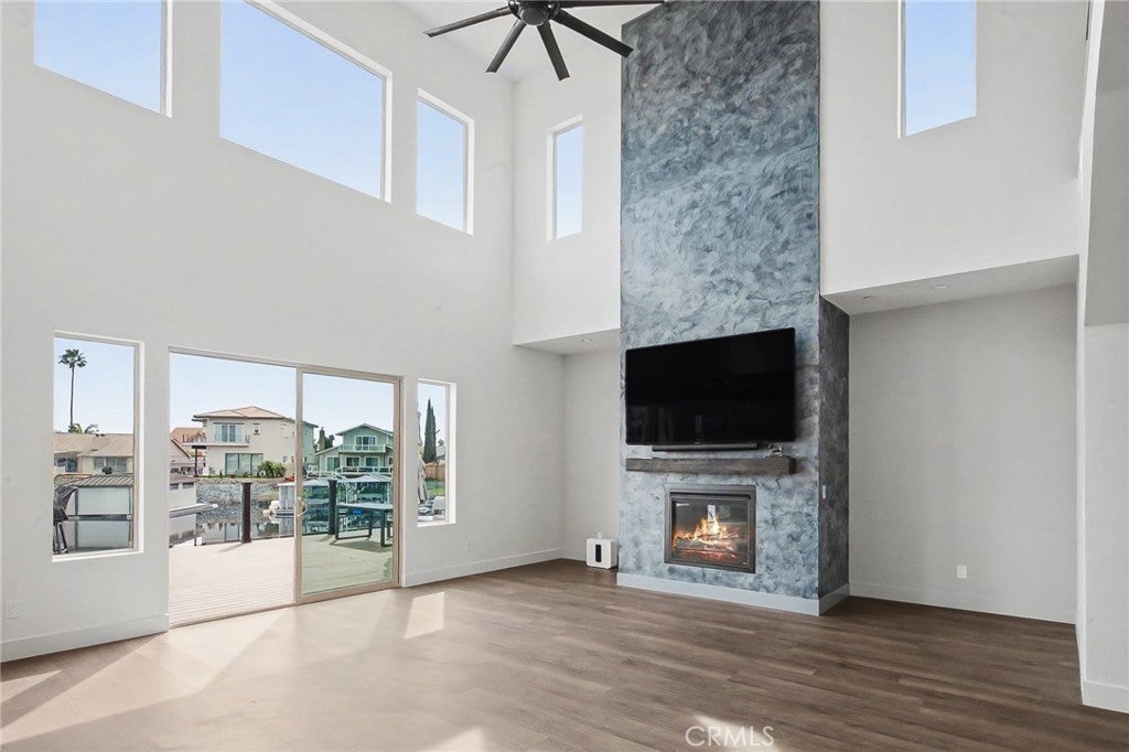 Major Price Improvement! Built in 2023, this custom waterfront residence offers modern luxury construction, high-end finishes, and energy efficiency in one of Discovery Bay’s most desirable boating locations. With approximately 3,170 sq ft of living space, this two-story home features 4 bedrooms, 4 bathrooms, and sits on an approximately 7,200 sq ft premium waterfront lot with direct navigable Delta water access. Designed for both everyday living and entertaining, the home features soaring 22-foot cathedral ceilings and an open-concept layout filled with natural light. The main living area is anchored by a dramatic 22-foot Venetian plaster fireplace feature wall. The chef’s kitchen includes a large entertainer’s island, commercial-style 36” stainless steel range, pot filler, pantry storage, and under-cabinet lighting, opening seamlessly to the living and dining areas for true indoor-outdoor waterfront living. A modern open staircase with horizontal railing and integrated lighting enhances the architectural design. The main level includes a full en-suite bedroom with walk-in closet, ideal for guests or extended family. The primary suite offers water views and private balcony access. The spa-style bathroom features floor-to-ceiling tile, a freestanding soaking tub, and a separate walk-in shower. Secondary bedrooms share a Jack-and-Jill bathroom with barn door accents. A professionally installed audio system by World of Sound & Vision includes Bluetooth speakers on the waterfront deck as well as in the living room and primary bedroom. Efficiency upgrades include fully paid-off solar, energy-efficient windows, modern HVAC, fire suppression system, upgraded insulation, and newer roofing components. Outdoor living features a reframed TREX U-Dock for durability and multi-watercraft functionality. The sale includes outdoor deck furniture and jet ski floating dock ramps for a turnkey Delta boating setup. Just minutes from fast water access. No HOA.
