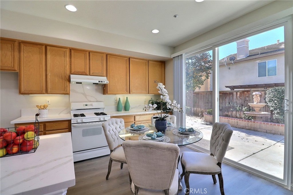 Welcome to sophisticated living in the prestigious Riverwalk Tiburon gated community, renowned for its resort-style amenities and serene setting. This elegant cul-de-sac residence offers 5 bedrooms, 4 baths, and a versatile upstairs loft—perfectly blending luxury and functionality. A grand foyer with soaring ceiling, beautiful chandelier, and curved landing staircase sets an impressive tone. The formal living room flows seamlessly into an elegant dining area, ideal for gatherings. A convenient downstairs bedroom and full bath provide flexibility for guests, a home office, or multi-generational living. The charming kitchen impresses with brand new quartz countertops with breakfast bar, new stainless steel sink and faucet. The kitchen is further enhanced with range hood, pantry, command center, and bright breakfast nook. The adjacent family room, centered around a cozy fireplace, creates a warm, inviting space for everyday living and entertaining. The luxurious primary suite features a spacious sitting area, entertainment alcove, and large walk-in closet with custom organization, including jewelry trays and locking feature. The en-suite bath indulges with a soaking tub, separate shower, private water closet, dual vanities, and makeup station. Two additional bedrooms share a Jack-and-Jill bath, while a third en-suite bedroom ensures privacy. The flexible upstairs loft suits a home office or reading nook. Notable features include upgraded lighting and range hood, abundant natural light, three-car garage, second-floor laundry, under-stair storage, and beautifully landscaped grounds with fruit trees. Riverwalk Tiburon HOA amenities feature pools, spa, playground, picnic areas, park, dog park, gated entry, and guest parking. Just outside the gate lies the scenic Riverwalk Parkway pond, gazebo, and trail—a popular spot for photos and strolls. Within walking distance to La Sierra University and close proximity from Walmart, Costco, 99 Ranch Market, Home Depot, UFC gym, banks, restaurants, medical offices, and shopping, this location offers unmatched convenience. An opportunity to own an exceptional home in one of the area’s most desirable communities. Don’t miss your chance to make it yours.