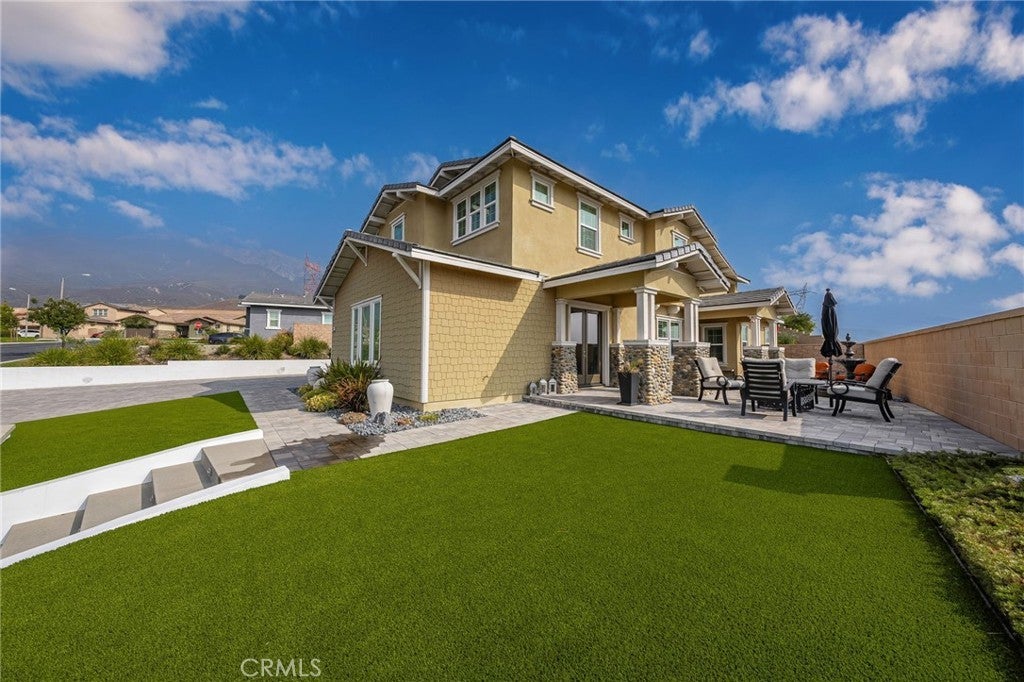 Welcome to your dream home in the prestigious Rancho Etiwanda Estates, a coveted gated community renowned for its luxurious living. This stunning property offers a perfect blend of elegance, comfort, and entertainment, featuring 4 spacious bedrooms, a versatile loft, and 3.5 beautifully appointed bathrooms. From the moment you arrive, you’ll be captivated by the grand outdoor entryway. Lighted stairs guide you past elegant columns adorned with stylish fixtures, leading to a charming courtyard and a meticulously paved driveway. As you approach, the soothing sound of cascading waterfalls welcomes you into this magnificent residence. Step inside to discover a world of sophistication. The expansive interior includes a large, gourmet kitchen complete with a butler’s pantry, perfect for hosting and meal preparation. The open-concept design flows seamlessly into the inviting living areas, creating an ideal environment for both relaxation and socializing. For those who love to entertain, this home is a true gem. The backyard is designed with luxury in mind, featuring a sparkling pool and spa, a cozy firepit, and a bar area equipped with a beer keg and sink. The dual barbecue setup, including a flat grill and additional sink, ensures you’re well-equipped for outdoor gatherings. The property also includes a spacious 3-car garage, offering ample storage and convenience. This residence is more than just a home; it's a lifestyle. Experience unparalleled elegance and entertainment in Rancho Etiwanda Estates—your perfect sanctuary awaits.