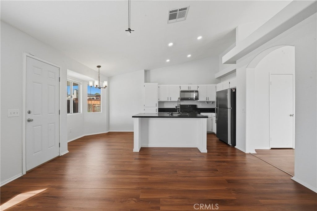 • Interior FeaturesCathedral Ceiling(s), Separate/Formal Dining Room, Eat-in Kitchen, Quartz Counters, All Bedrooms Down, Main Level Primary, Primary Suite