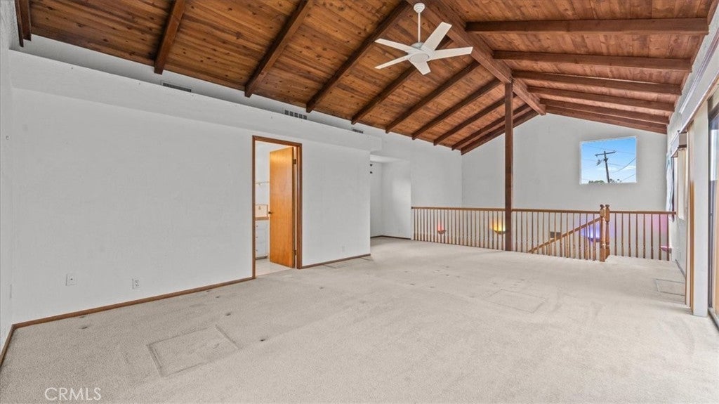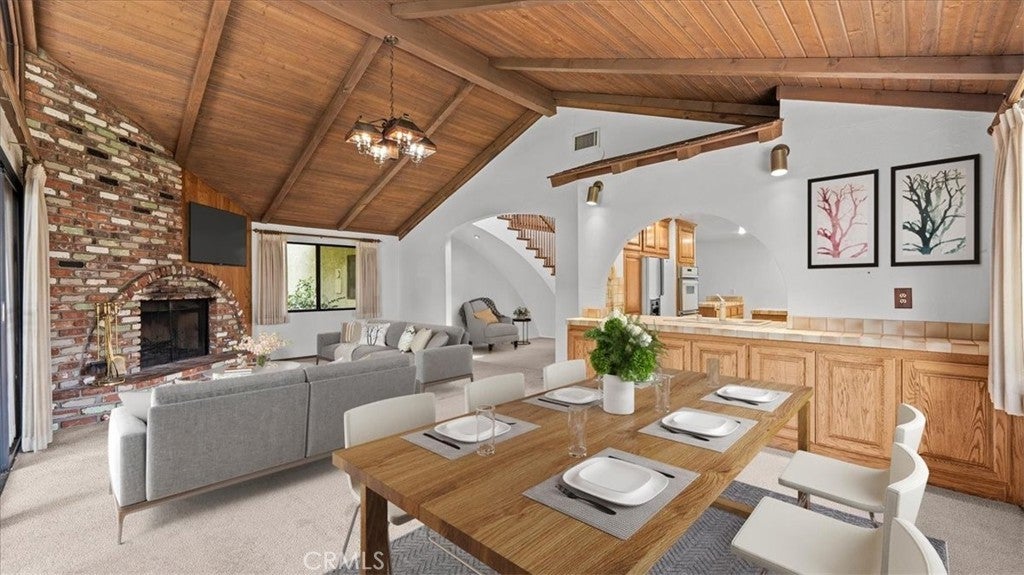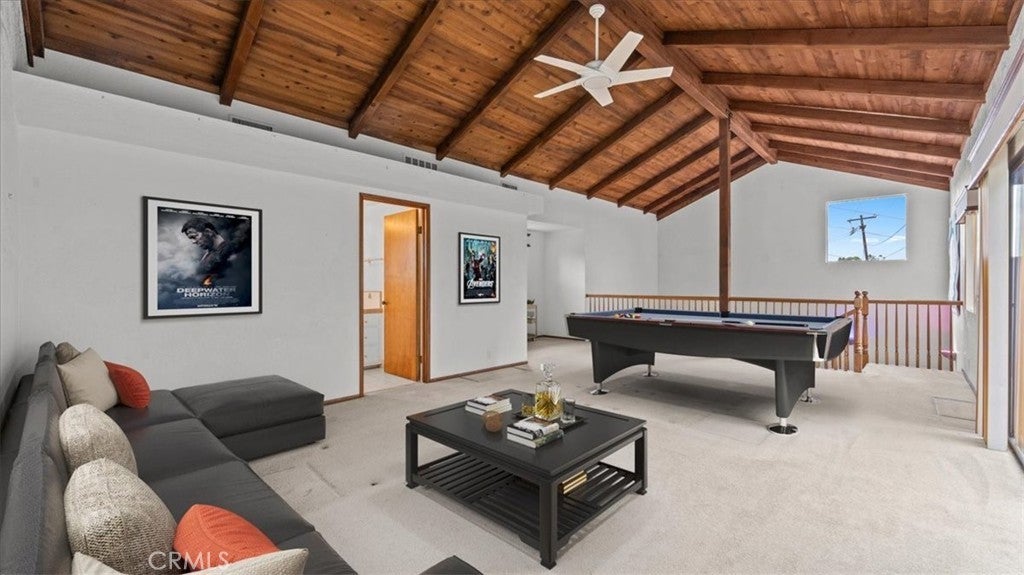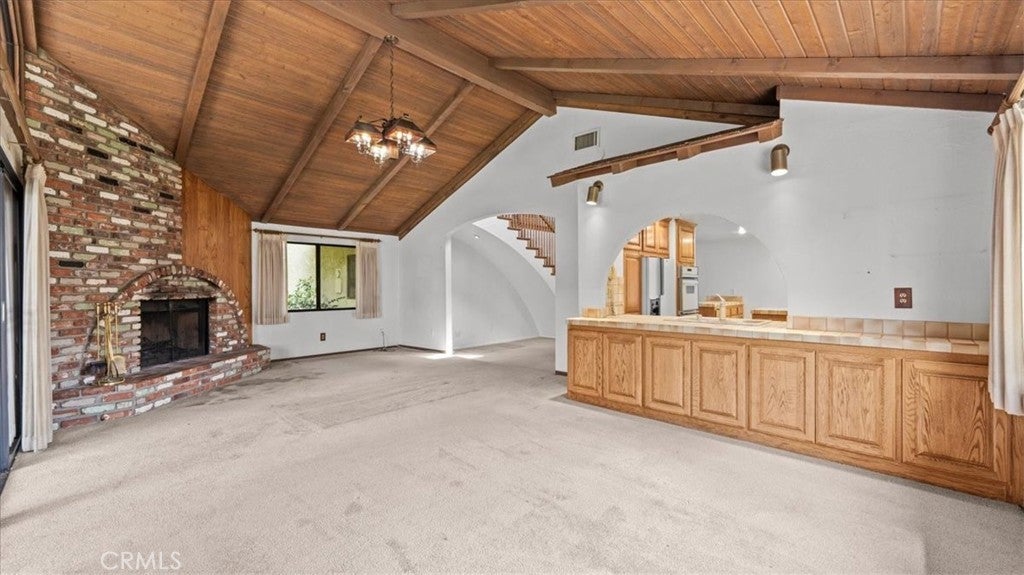 This view home will not last! The golf course and sunset views are spectacular! Welcome to one of the most coveted locations in all of the North La Verne Hillside. You will be delighted the moment you pull up to this warm, Spanish-style residence, with its arched entryway, handsome brick-paver driveway, and a striking wood pergola courtyard that sets the tone before you ever step inside. Enter and discover a spacious living room anchored by a wood-paneled fireplace surround and a graceful staircase leading to the home's true showpiece: a dramatic loft and game room with soaring vaulted ceilings, exposed wood beam detail, and a second brick fireplace. This is a room unlike anything the neighbors have. The kitchen features warm wood cabinetry, tile countertops, and a functional layout with an adjoining dining area open to the great room. The bedrooms are well-proportioned, clean, and quiet, with windows framing the surrounding hillside. The home is in original condition and immaculately presented throughout. Pride of ownership shows in every room. Step into the backyard and prepare to stop what you are doing. A substantial covered patio and generous deck area flow onto an expansive green lawn. The elevated position delivers open sky in every direction. The fairways of the San Dimas Canyon Golf Club stretch across your full sightline, and the sunsets here earn their own audience every evening. The second-story balcony offers another vantage point that you will often return to. The aerial photography confirms what the address promises: this home sits perched high above the valley floor, & the views are real. Come at dusk, and you will understand. Commuter-friendly, the 210 Freeway is at the southern end of North La Verne, placing Pasadena within 30 minutes & downtown Los Angeles within an hour. For professionals seeking genuine distance from the city without surrendering their commute, this location delivers. Marshall Canyon Regional Park, 120 acres of hiking & mountain biking trails, is minutes away, as is Marshall Canyon Golf Course. The Bonita Unified School District serves this address, with Oak Mesa Elementary, Ramona Middle School, & Bonita High School. All top-rated schools. A hillside address with a vaulted loft, a perfect space for a pool table, a covered pergola, an outdoor fireplace, and a golf course view, all located on a quiet hillside cul-de-sac. What more could you ask for? Please call for your personal tour. This house will not last!