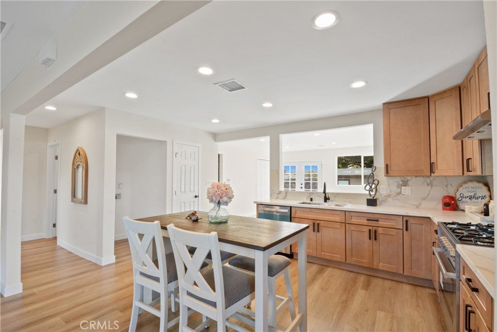 Summer is calling and the pool is ready whether you prefer a bikini, a speedo, or just floating like a starfish. Welcome to the house with the largest bedrooms you have been waiting for. This spacious and beautifully remodeled home offers 3 full size bedrooms and 3 full bathrooms across approximately 1839 square feet, making it one of the largest homes in the area and one of the most comfortable to live in. The oversized primary suite feels like its own private retreat with plenty of space to relax (you will hardly find a larger master bedroom), a large closet, and a beautifully updated bathroom with direct access to the pool because nothing says luxury like stepping out for a morning swim before coffee. All bedrooms are generously sized so no one has to fight over who gets the good room they are all the good room. The kitchen has been tastefully remodeled and opens to both the living and family rooms, creating a bright open concept layout filled with natural light. Enjoy new cabinetry, quartz countertops, self closing drawers and cabinets, a new stove, stainless steel appliances, dishwasher, sink, and updated hardware that makes the whole space feel fresh, modern, and ready for entertaining. Step outside to a backyard designed for fun. The fenced pool and yard area are perfect for parties, weekend get togethers, or simply relaxing under the sun while pretending you are on vacation without paying resort prices. Access to the garage from the alley adds convenience and flexibility. Bathrooms throughout the home have been remodeled with new flooring, doors, windows, tile work, toilets, vanities, mirrors, tubs, and sleek glass sliding doors that give a clean modern feel. Conveniently located near freeways, schools, parks, downtown, and major shopping, this home makes daily life easy while giving you a space you will actually want to rush home to. The home also comes with a one year home warranty paid by the seller and a completed termite Section 1 clearance for added peace of mind. Act fast bring your swimsuit and your best offer because this pool is warming up and so is the market.