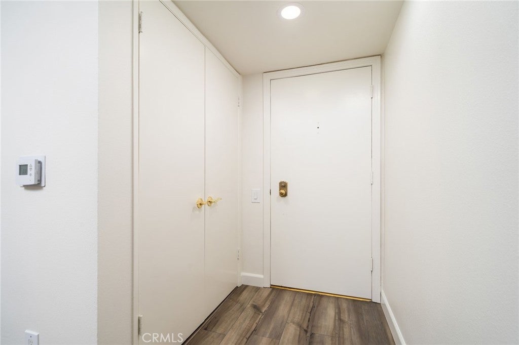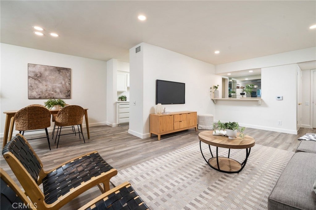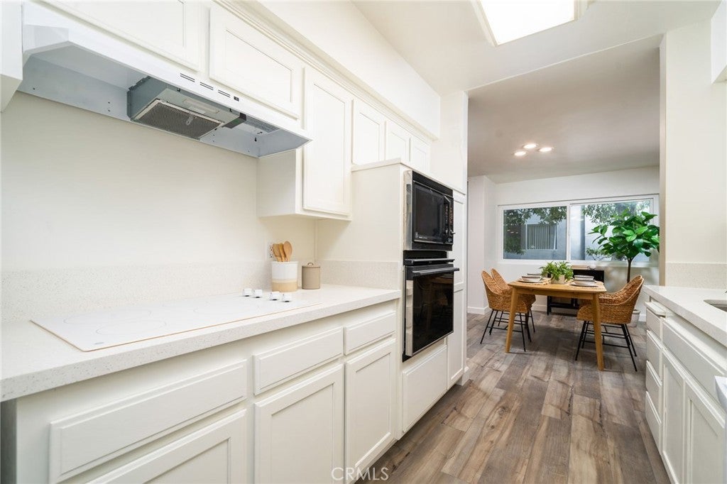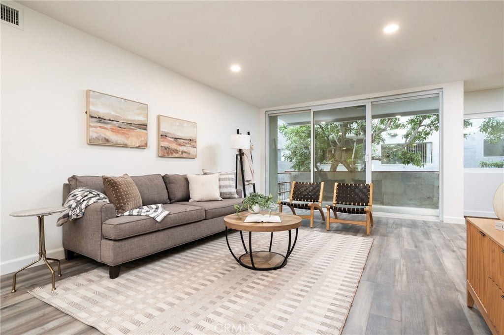 Beautifully updated condo that blends comfort, style, and has an exceptional location. Inside, you’ll find new flooring throughout, accented by new 4 inch baseboards, fresh interior paint, and updated recessed lighting that creates a bright and inviting atmosphere. The main living and entertaining area features a welcoming bar perfect for friends or family fun. Large sliding glass doors off the main entertaining area open to a patio surrounded by lush greenery and tranquil tree views—perfect for relaxing with a cup of coffee or your favorite beverage. The kitchen has been thoughtfully upgraded with new quartz countertops, a new Kohler faucet, new plumbing under the sink, a new GE dishwasher and GE cooktop. New lighting in the kitchen creates a bright and functional space for cooking and entertaining. The spacious primary suite offers two closets, including a double-door entry closet and a 2nd large walk-in closet, along with a ceiling fan for added comfort. The ensuite bathroom features both a separate tub and shower with a grab bar for safety. A large guest bathroom is conveniently located just off the main living area. Additional features include a double-door closet at the entry providing excellent storage. This unit features the perk of easy, and close, access to a beautiful oversized community pool and separate jacuzzi spa. Perfect for entertaining or relaxing on your own! The home also includes private garage parking beneath the building with elevator access, as well as a community recreation center with workout equipment and a sauna. Water, trash, and controlled access are all included. Ideally located directly across the street from a large park and recreation center with abundant street parking. Conveniently located Private Washer and Dryer in the condo! Just minutes from excellent shopping (Trader Joes), delicious dining, and freeway access. This move-in-ready condo offers the perfect combination of great location and convenient simplicity.