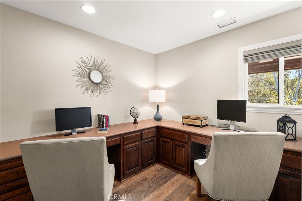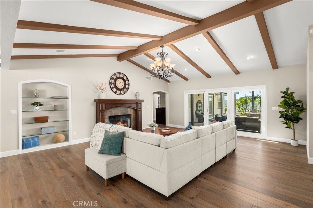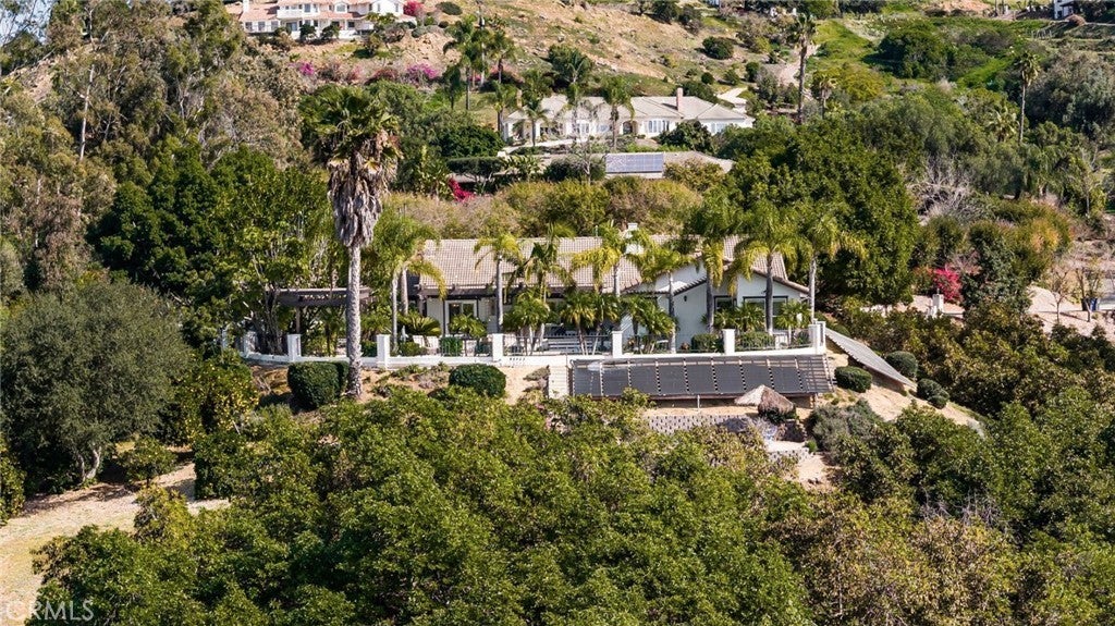 Commanding a premier elevated setting in Fallbrook’s coveted Gird Valley, this beautifully reimagined single-story estate offers breathtaking orchard and valley views, privacy, and resort-style living on approximately 2.68 acres. Thoughtfully renovated with timeless design and modern comfort, the home delivers a true retreat-like lifestyle designed for both entertaining and everyday living. The expansive interior features brand-new Provenza wood flooring, fresh interior paint, beamed and cathedral ceilings, and high-end finishes throughout. A dramatic dual-sided fireplace connects the main living area to an impressive 26’ x 26’ bonus/game room with a built-in dual-workstation office nook, separate media/storage closet, and speakers throughout the home and backyard for seamless indoor-outdoor living. The private primary suite is a serene retreat with a spa-inspired bathroom and a sun-filled sitting room just off the bedroom. Recent upgrades include an updated guest bathroom with quartz counters and new flooring, zoned HVAC, dual-pane windows, smart thermostats, smart locks, and a full security system with five Ring floodlight cameras. Outdoor living is exceptional, featuring multiple patios, terraces, and view decks, a resort-style pool and spa with Pentair controls, both gas and wood-burning fire pits (including one on the lower deck), three outdoor fountain features, professionally lit patios, mature palms, and a newly added Zen garden. The lush grounds create a true garden-to-table lifestyle with an established avocado orchard (approximately 129 trees), along with apple, navel orange, blood orange, Valencia orange, grapefruit, lime, lemon, plum, and strawberry guava trees, plus a thriving herb garden and rare plant specimens. Additional highlights include a charming porte-cochère entry, circular driveway, three-car garage, RV access/parking, storage sheds and cabana structures. The lower portion of the property offers excellent ADU potential with a separate grove road allowing for a possible private entry or driveway. Turnkey, private, and impeccably maintained, this is a rare opportunity to own a Gird Valley estate offering land, views, amenities, and an exceptional lifestyle.