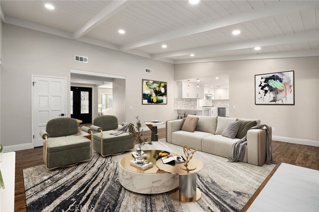 • Interior FeaturesBeamed Ceilings, Breakfast Bar, Separate/Formal Dining Room, Quartz Counters, Recessed Lighting, Track Lighting, All Bedrooms Down, Bedroom on Main Level, Main Level Primary, Walk-In Closet(s)