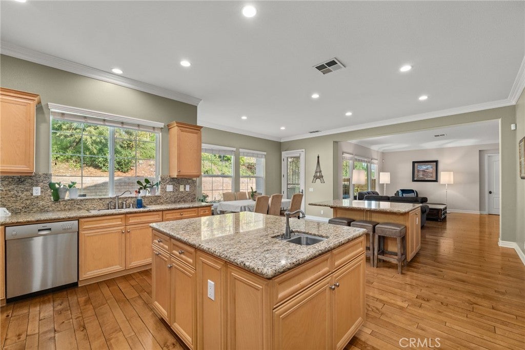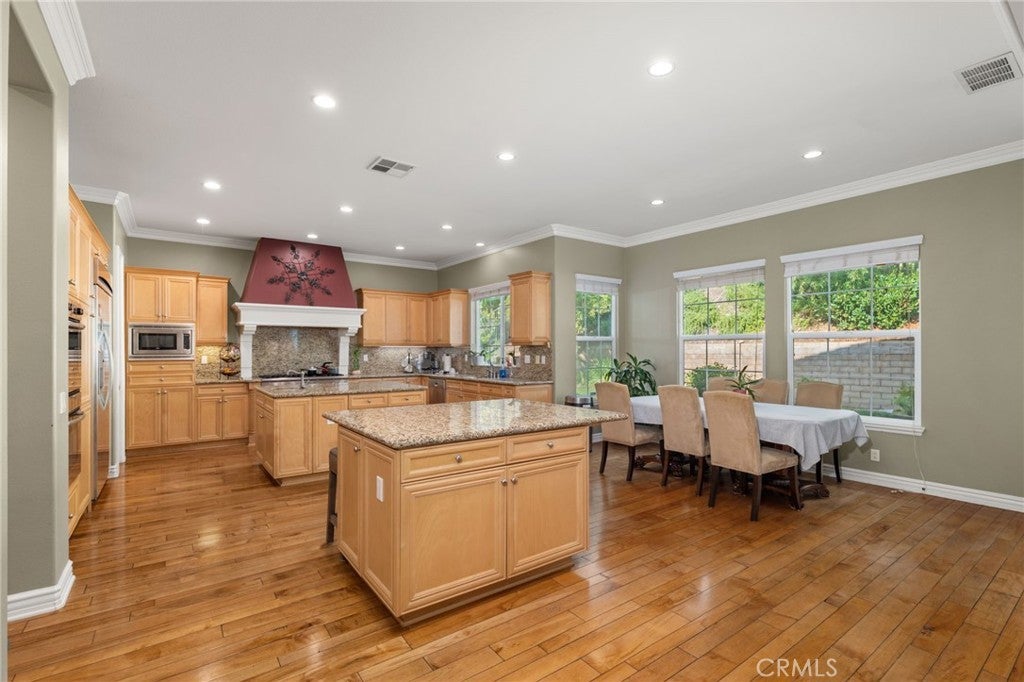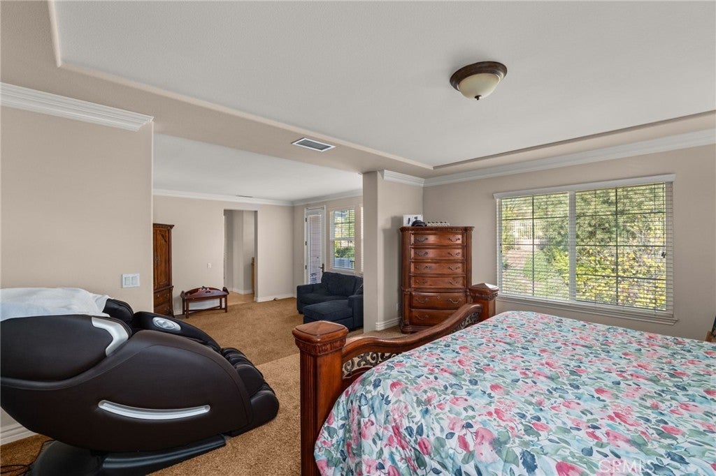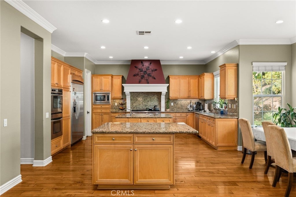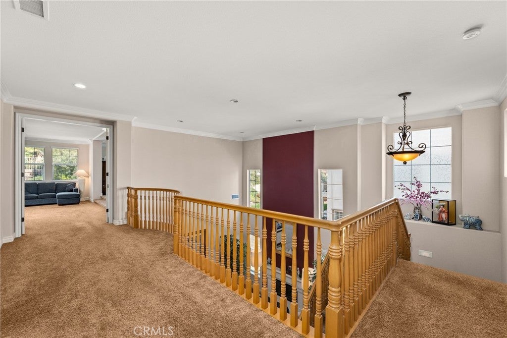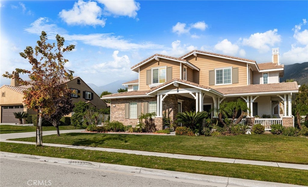 Welcome to 13812 Breeders Cup Drive — Luxury Living in the Foothills of Rancho Cucamonga. Tucked away in the prestigious foothills of Rancho Cucamonga, this remarkable 6-bedroom, 6-bathroom estate offers a perfect blend of elegance, comfort, and versatility. Designed for modern living, the spacious layout easily accommodates multi-generational households while maintaining a sense of warmth and privacy. From its manicured landscaping to the inviting front porch and beautiful brick-and-stucco exterior, every detail of this home exudes curb appeal. Step inside to a grand foyer with custom tray ceilings, hardwood flooring, and exquisite crown molding — a true showcase of craftsmanship and style. A private mother-in-law suite with its own private entrance, living area, bedroom, and bath provides the ideal setup for guests or extended family. Expansive living spaces throughout the main level are filled with natural light and accented by arched walkways, rich wood tones, and a dramatic staircase that anchors the heart of the home. The chef’s kitchen opens to a spacious family room, creating an effortless flow for entertaining or casual gatherings. Each bedroom is comfortably sized, while the bathrooms are thoughtfully updated with granite countertops, designer tile, and quality fixtures. Outdoors, enjoy a peaceful retreat surrounded by lush landscaping — perfect for morning coffee, weekend barbecues, or quiet evenings under the stars. Ideally situated near award-winning schools, scenic walking trails, and premier shopping and dining, this home captures the best of Rancho Cucamonga living — where sophistication meets everyday comfort.