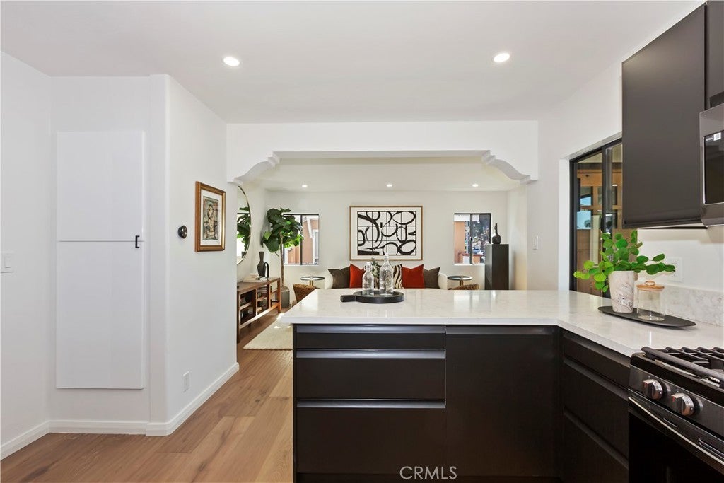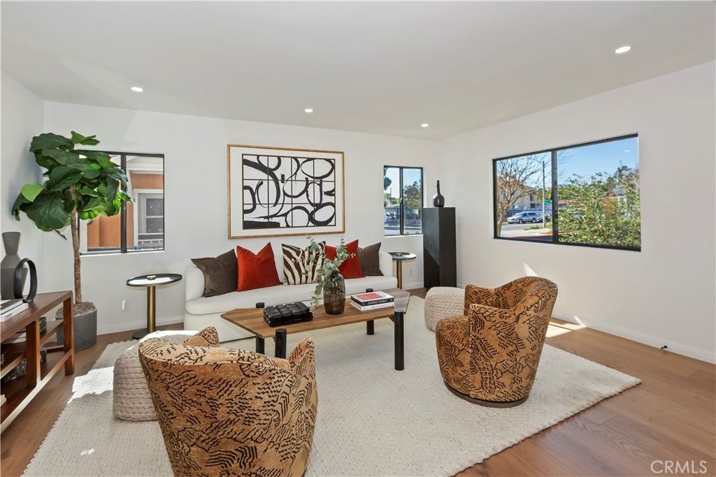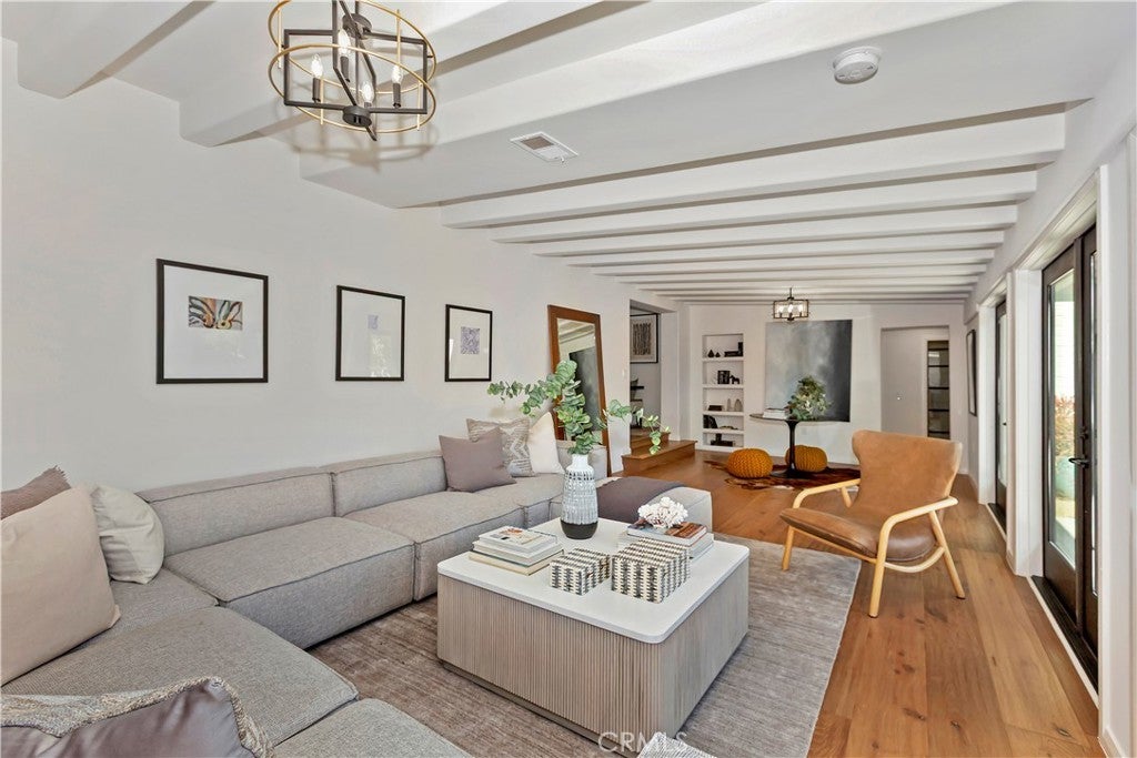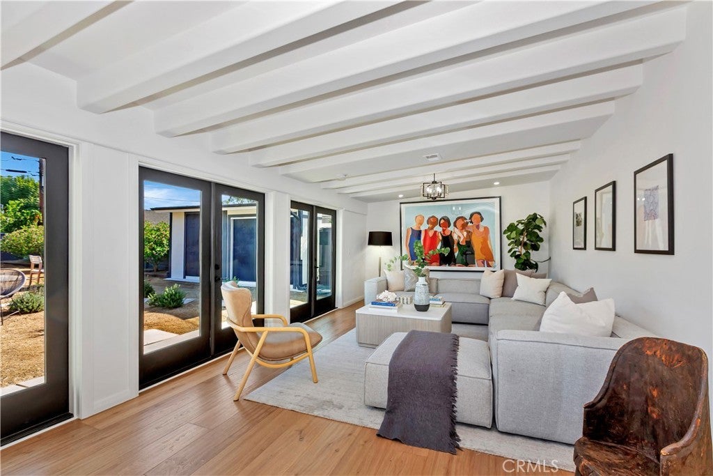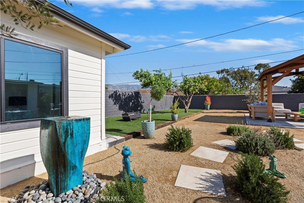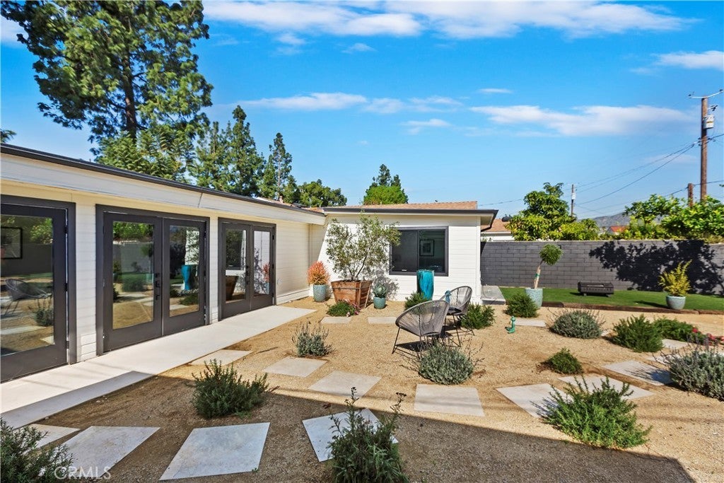 Tucked away on a quiet residential street in the heart of Burbank, this thoughtfully reimagined home welcomes you with a sense of calm the moment you arrive. Subtle water features, clean architectural lines, and intentional landscaping set the tone for what unfolds inside — a residence transformed into a serene, modern retreat years in the making. The single-story layout flows effortlessly, blending warmth and sophistication with contemporary design. Wide-plank engineered hardwood floors, abundant natural light, and custom solid wood doors create continuity and texture throughout. The welcoming living room opens seamlessly into a designer kitchen where quartz countertops, dark stainless steel appliances, and an open-concept layout invite both everyday living and effortless entertaining. At the heart of the home, indoor-outdoor living takes center stage. French doors from the expansive den open to a beautifully curated backyard, allowing light, air, and nature to become part of daily life. This flexible second living space serves as a tranquil lounge, creative retreat, or gathering area — always connected to the outdoors. The backyard itself feels like a private sanctuary, designed with intention and flow. A custom pergola lounge, modern hardscape, layered seating areas, and low-maintenance landscaping create a resort-inspired setting ideal for hosting or unwinding. Every detail reflects a calm, organic aesthetic and a commitment to effortless living. Three spacious bedrooms offer comfort and versatility, while spa-inspired bathrooms showcase refined tile work and a soothing, zen-like feel. Nearly everything you see and touch has been thoughtfully updated, resulting in a home that feels cohesive, elevated, and entirely turn-key. Located just minutes from major studios, freeways, shopping, dining, Magnolia Park, and Downtown Burbank, this home offers the rare balance of peaceful neighborhood living with exceptional convenience. More than a home, this is a reimagined lifestyle — where design, comfort, and tranquility come together with ease.