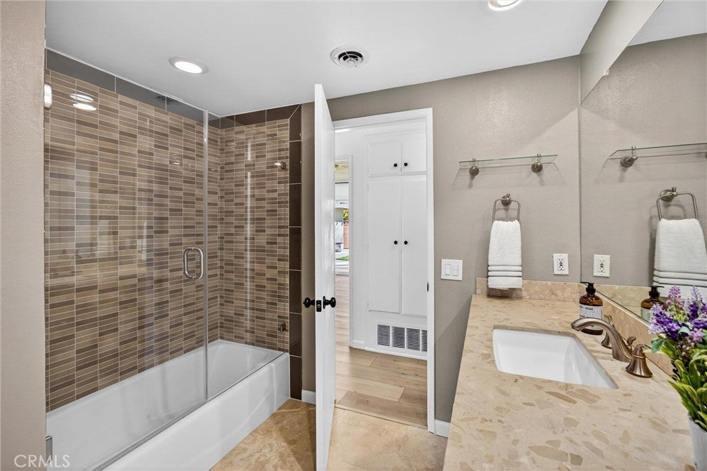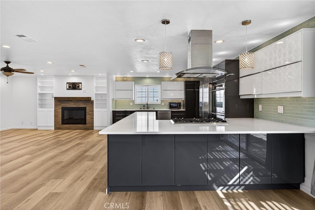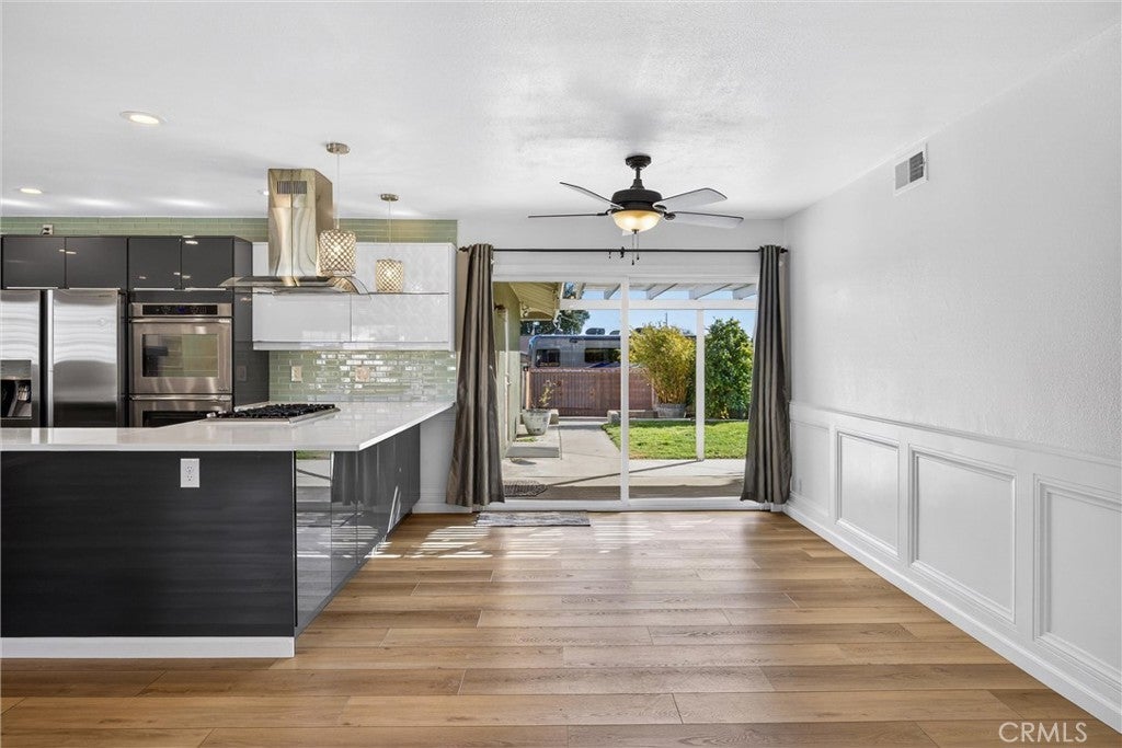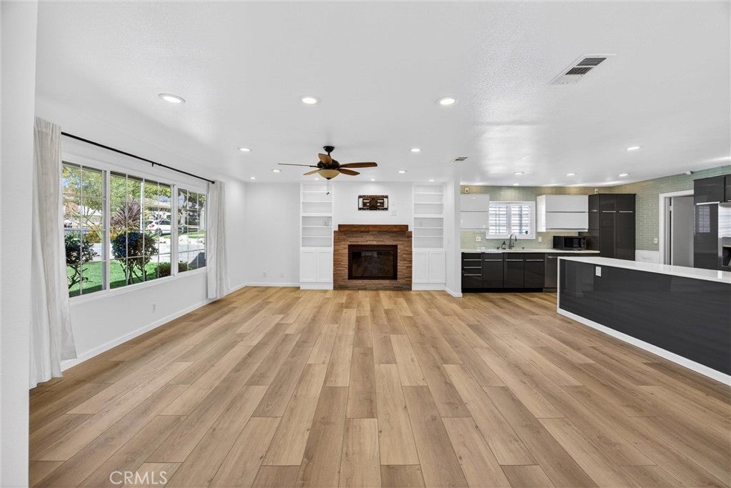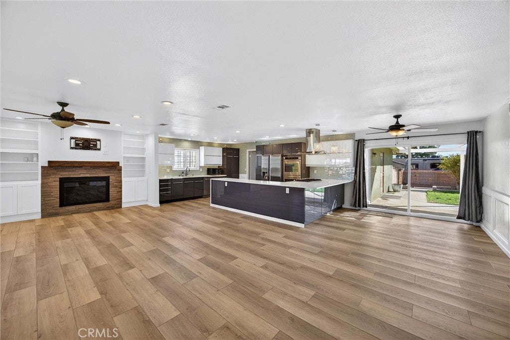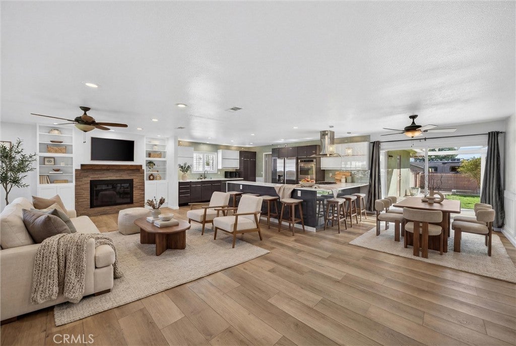 Stunning Fully Remodeled Single-Story Home in North Upland! Situated on a beautiful tree-lined street, this exceptional 4-bedroom, 2.5-bath residence showcases thoughtful upgrades and modern design throughout. Enter through the high-end shaker-style steel front door into an open, light-filled floor plan featuring luxury composite flooring and recessed lighting. The spacious living room is warm and inviting, highlighted by a contemporary stone fireplace, custom built-in bookshelves, and an abundance of natural light. The designer kitchen is a true showstopper, appointed with premium Dacor appliances, custom cabinetry, quartz countertops, and a wine/beverage refrigerator — perfect for both everyday living and entertaining. Enjoy beautifully updated bathrooms with sleek, modern finishes. Major improvements include a new roof and SELLER OWNED SOLAR PANELS, providing both value and energy efficiency. Step outside to a nicely landscaped backyard offering a variety of fruit trees, including avocado, nectarine, apricot, and grapefruit, along with a lovely covered patio ideal for relaxing or hosting gatherings. Car enthusiasts and adventurers will appreciate the large gated RV parking complete with electrical hookup, water, and a dump station, plus a long driveway with ample parking. Located within the highly desirable Pepper Tree School District, this turnkey home combines style, comfort, and convenience — truly move-in ready!