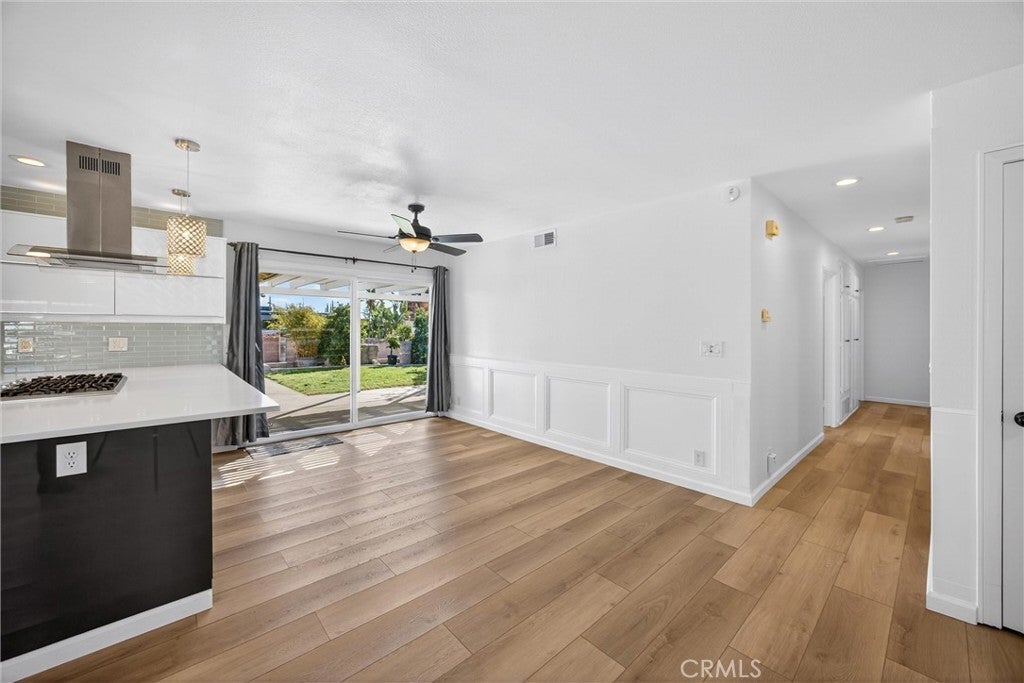 • Interior FeaturesBreakfast Bar, Built-in Features, Ceiling Fan(s), Open Floorplan, Quartz Counters, Recessed Lighting, Primary Suite, Paneling/Wainscoting