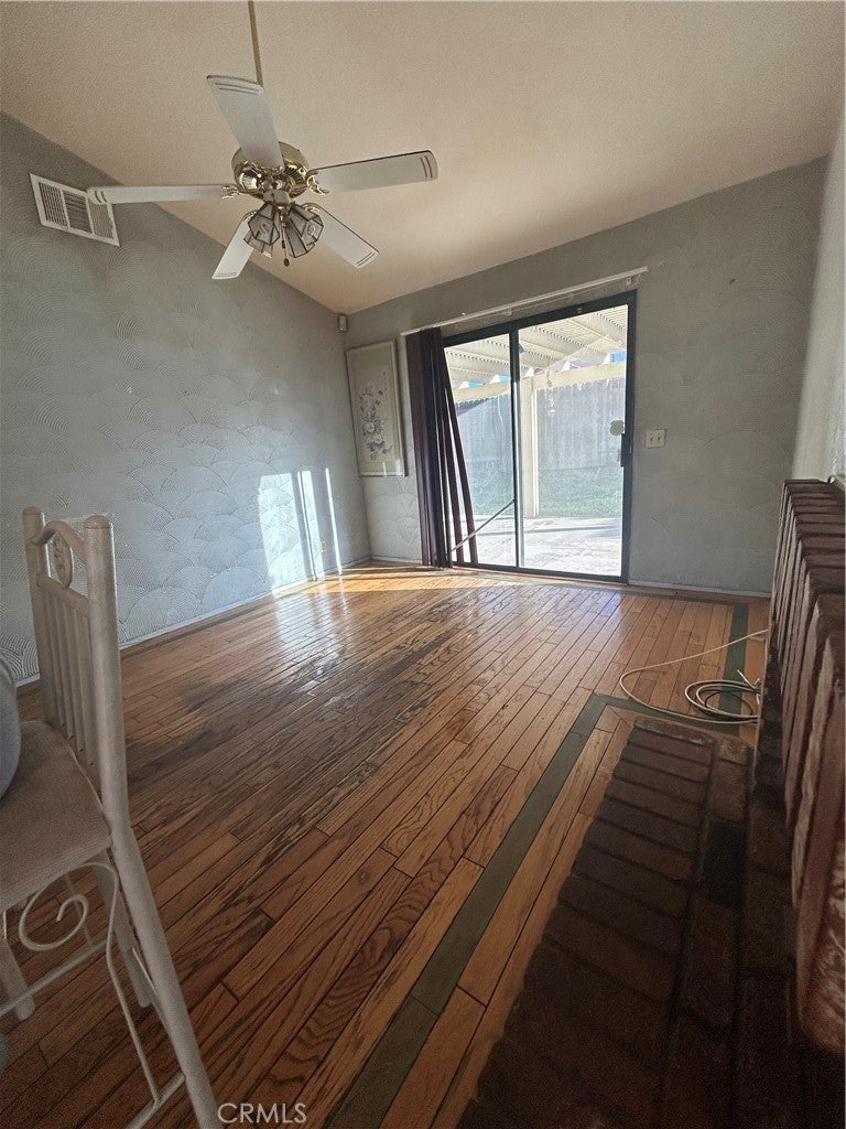 This 3-bedroom, 2-bath home features a functional layout and a spacious backyard. Entry living room leads into an open kitchen with ample cabinetry and a breakfast bar, joined by a family room that opens to a covered patio. The primary bedroom has a private bath and own entry to backyard; two additional bedrooms share a second bathroom. Recent updates include a new HVAC system, electrical box and wiring, water lines, and exterior fencing. The backyard is ideal for kids, pets, or gatherings, with a cemented covered alumna wood patio and low-maintenance landscaping.