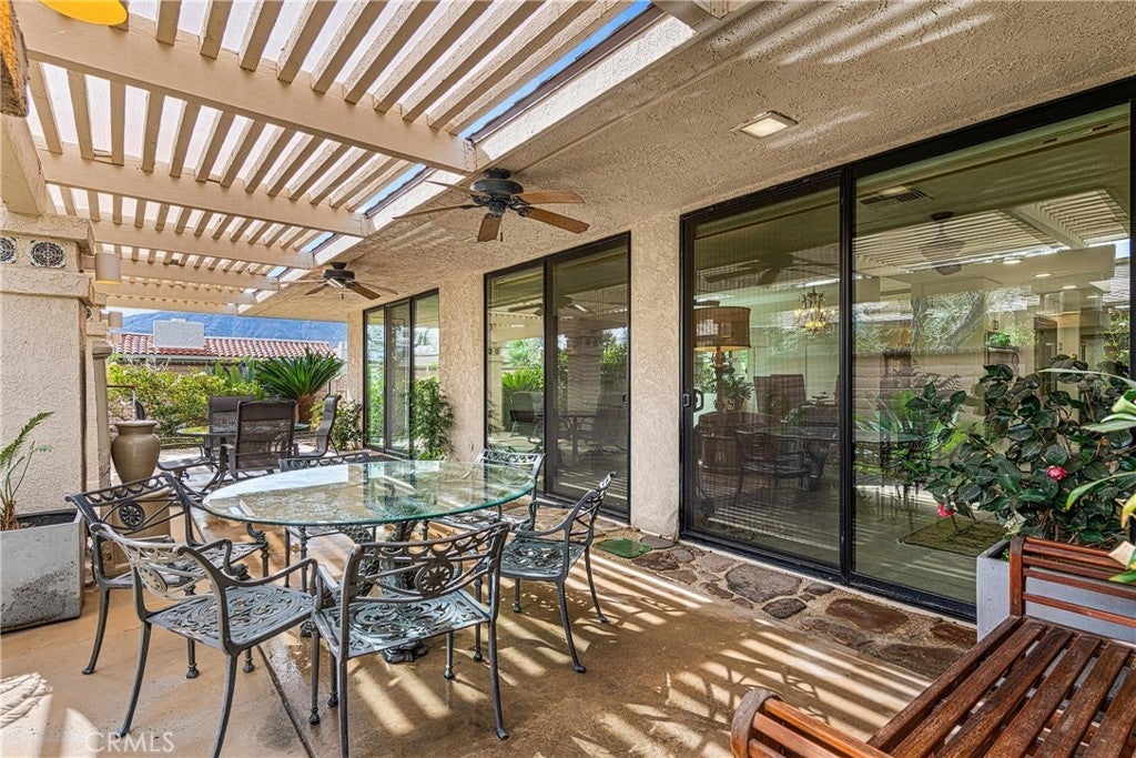 Located in the highly sought-after The Springs Country Club, this extended Broadmoor floor plan, expanded by over 200 square feet, offers approximately 3,100 square feet of living space with three generously sized bedrooms, each with its own en-suite bath. The home features upgraded Milgard dual-pane windows throughout, plantation shutters, recessed lighting, and a well-designed layout that lends itself beautifully to personalization. Additional highlights include a wet bar, fireplace, and upgraded closets, complete with interior lighting that illuminates when the doors are opened. Existing Viking appliances, solid construction, and an air-conditioned garage, originally designed to accommodate a luxury vehicle provide a strong foundation for a thoughtful remodel tailored to today’s standards. Set within one of Rancho Mirage’s most established country club communities, residents enjoy a signature 18-hole, par-72 golf course designed by Desmond Muirhead, spanning 6,637 yards and framed by sweeping views of the San Jacinto Mountains. The Springs offers a 48,000-square-foot clubhouse, practice facilities, and multiple dining options, including casual dining at The Oasis and fine dining in the main clubhouse.
