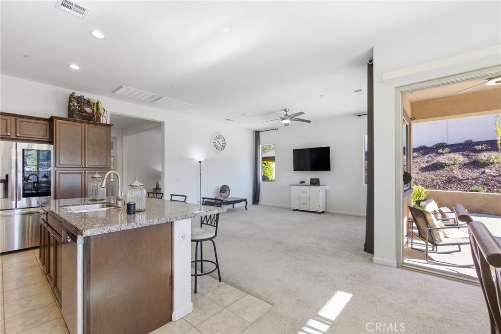 Welcome to Terramor, one of the most sought after 55+ guard-gated communities in Corona where you will enjoy resort style living as you enjoy all of the amazing amenities it has to offer. It has been named among the 50 best master-planned communities in the country! This beautifully maintained single story 1,746 sq ft home offers 2 Bedrooms, 2 Baths, a spacious Office/Den, a Kitchen, Dining & Laundry room. This gorgeous home features 10 ft ceilings with an open-concept floor plan throughout combining a perfect blend of comfort & style on an 8,400 sq ft lot. As you enter the Kitchen you will notice the eye-catching granite countertop, 5-burner gas range, stainless steel oven & microwave plus a gorgeous Island and breakfast bar blending function & style. The well-designed master bedroom offers beautiful views with a generously sized walk-in closet. There is an inviting guest bedroom & full guest bath along with a spacious office/den/library awaiting you. Step through the dining room sliding doors to the california room as you enter your backyard oasis, designed for relaxation & entertaining. Terramor amenities include 2 clubhouses, your exclusive membership in the Terrace Club with a fabulous Bar & entertainment lounge to socialize & meet your neighbors, a game room, pool table, craft studio, massage room, a fitness center with a gym & wellness studio, indoor/outdoor pools, jacuzzi, and sauna. There is a cozy fire pit to relax & enjoy the sunsets and breathtaking views of the Santa Ana Mountains. Terrific courts for pickleball, tennis & bocce ball, a community garden, walking trails, parks & even 2 dog friendly parks. This is a must see!