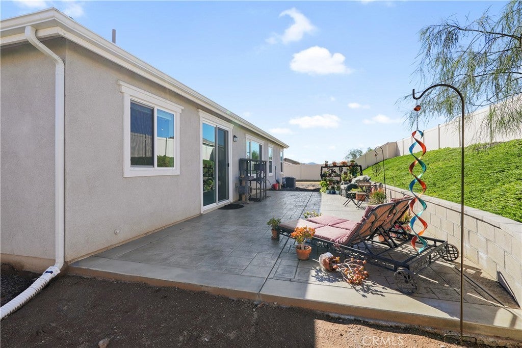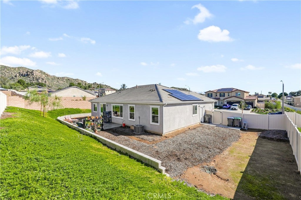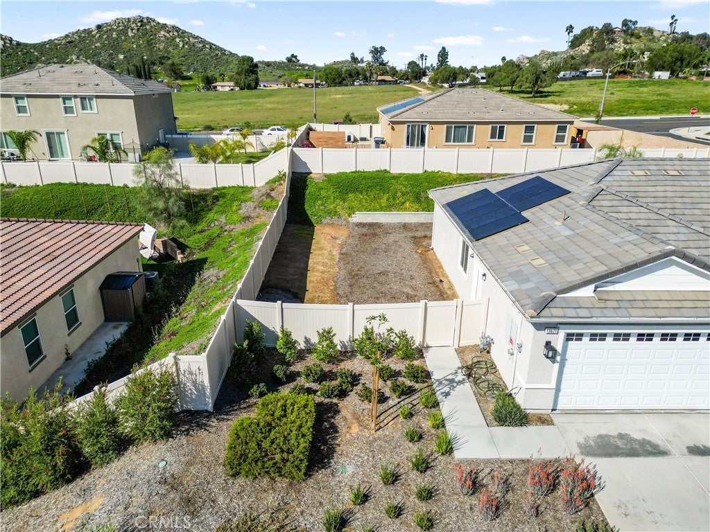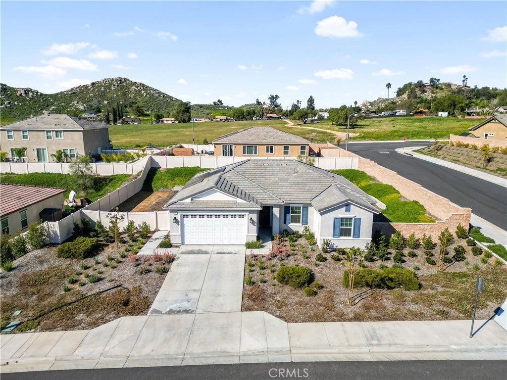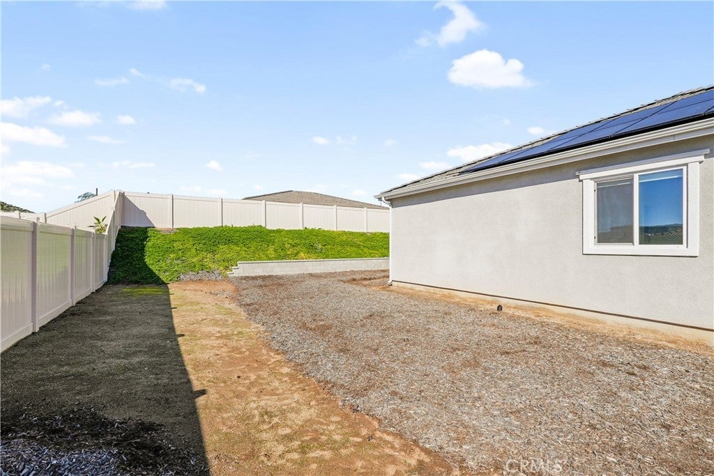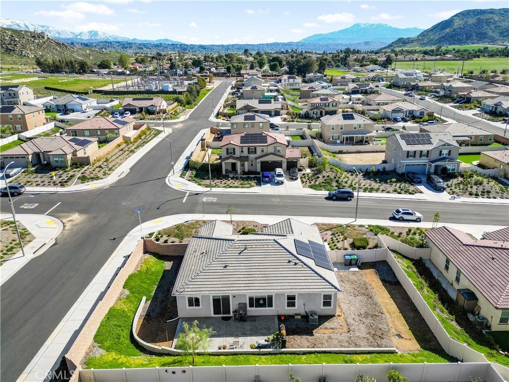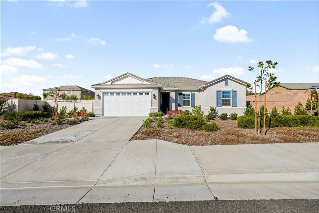Built in 2023, this beautifully maintained single-story home offers 4 bedrooms and 2 bathrooms on a spacious 10,000+ sq ft corner lot in Moreno Valley. A welcoming foyer entry leads into an open-concept layout featuring recessed lighting and dual pane windows throughout the home, a large kitchen island, and a bright living space ideal for everyday living and entertaining. The privately separated primary suite includes a spacious bathroom with a separate soaking tub and glass-enclosed stand-up shower, along with a large walk-in closet, providing comfort and privacy. The flexible floor plan also offers potential for multigenerational living. Exterior highlights include a 4-car driveway, added rain gutters, paved front porch, landscaped garden barrier, and a paved open back patio perfect for outdoor seating and entertaining. The expansive lot offers potential RV parking and ample outdoor space. The home includes fully purchased solar and all green energy appliances, with current utilities reported at approximately $30 per month. Upgrades are already included in the purchase price, providing move-in-ready convenience and exceptional value. Conveniently located near shopping, dining, schools, and commuter access.
