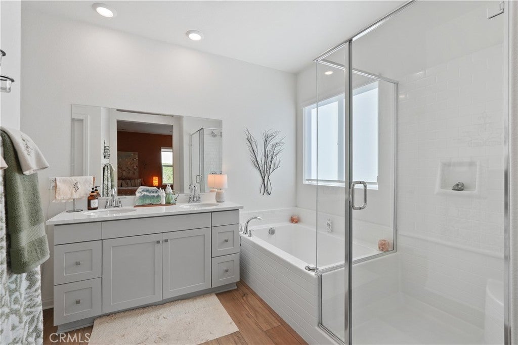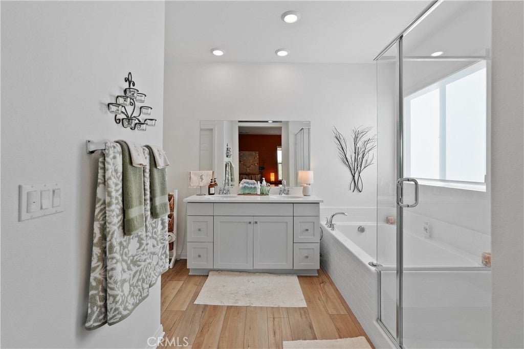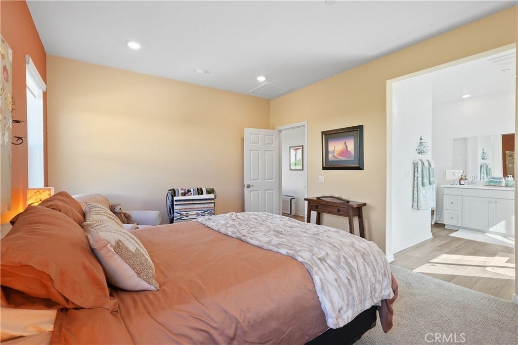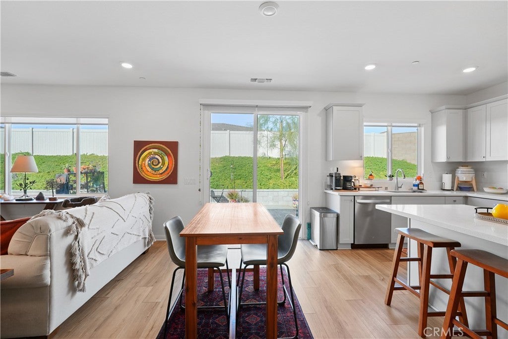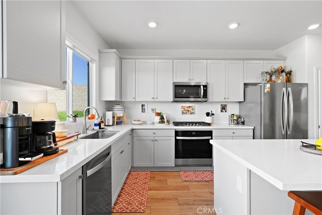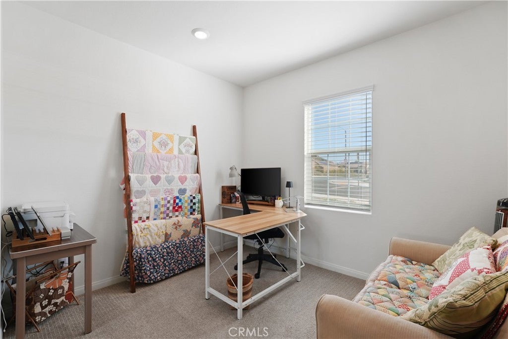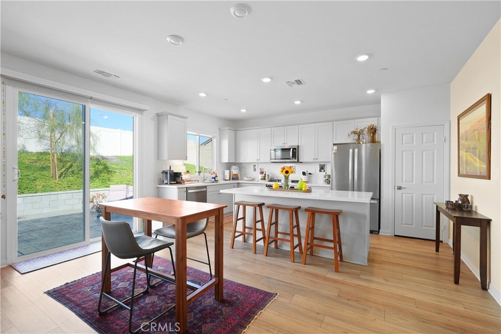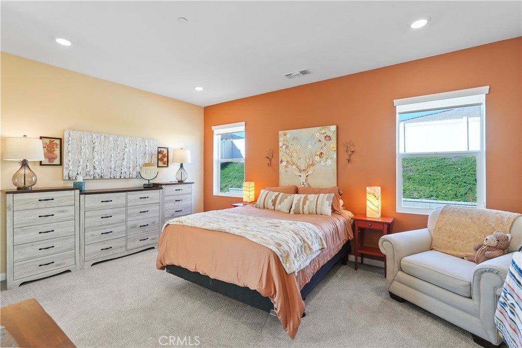 Built in 2023, this beautifully maintained single-story home offers 4 bedrooms and 2 bathrooms on a spacious 10,000+ sq ft corner lot in Moreno Valley. A welcoming foyer entry leads into an open-concept layout featuring recessed lighting and dual pane windows throughout the home, a large kitchen island, and a bright living space ideal for everyday living and entertaining. The privately separated primary suite includes a spacious bathroom with a separate soaking tub and glass-enclosed stand-up shower, along with a large walk-in closet, providing comfort and privacy. The flexible floor plan also offers potential for multigenerational living. Exterior highlights include a 4-car driveway, added rain gutters, paved front porch, landscaped garden barrier, and a paved open back patio perfect for outdoor seating and entertaining. The expansive lot offers potential RV parking and ample outdoor space. The home includes fully purchased solar and all green energy appliances, with current utilities reported at approximately $30 per month. Upgrades are already included in the purchase price, providing move-in-ready convenience and exceptional value. Conveniently located near shopping, dining, schools, and commuter access.