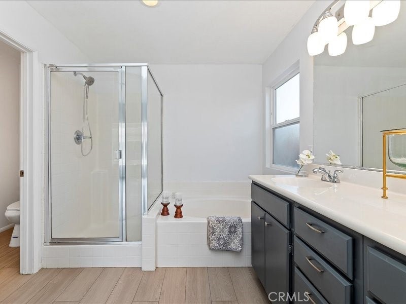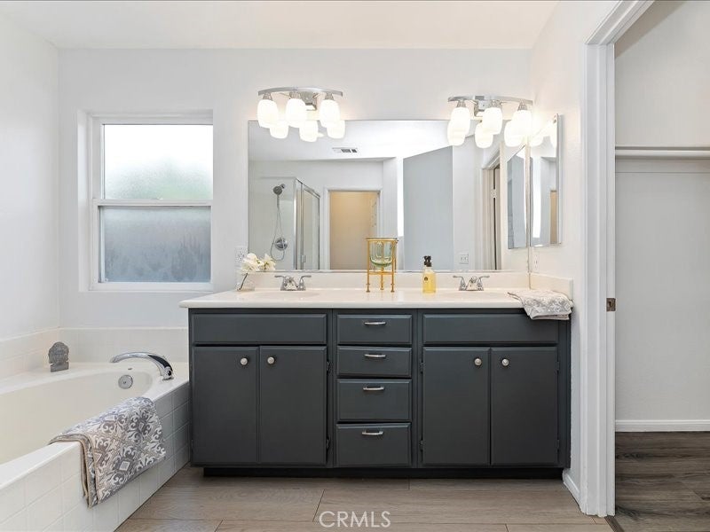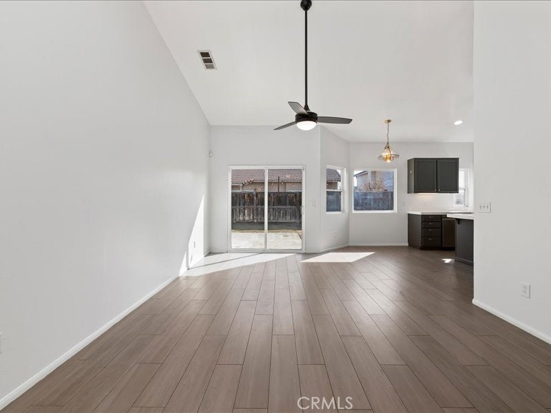 Welcome ...This Beautiful and spacious home with an open, welcoming layout and high vaulted ceilings.Features laminate ceramic tile flooring throughout. a bright & roomy living room with spacious ceilings and a formal dining area. Great kitchen with plenty of cabinets and a island get ready to cook and entertain, leads to an open concept den with fireplace great for entertaining family and friends. This home is located on a quiet culdasac and has so much to offer and call it home. This home includes 3 bedrooms. including a primary suite with walk in closet and a bedroom featuring double sinks. a soaking tub, and separate shower. the additional two bedrooms are nicely sized with a near by second bathroom. The huge backyard offers a deep large lot with potential for an ADU,RV parking, or a pool. (Buyer to verify through the city or county)Don't miss this opportunity to make this your Dream Home!